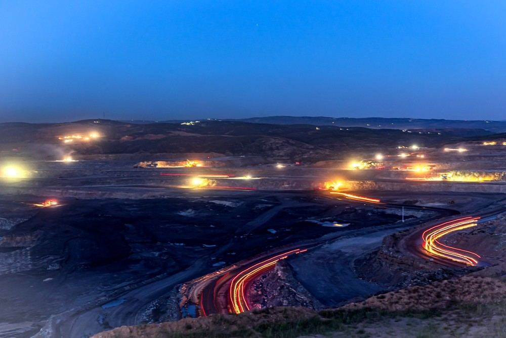 夜色中熱火朝天的哈爾烏素露天煤礦生產(chǎn)現(xiàn)場。