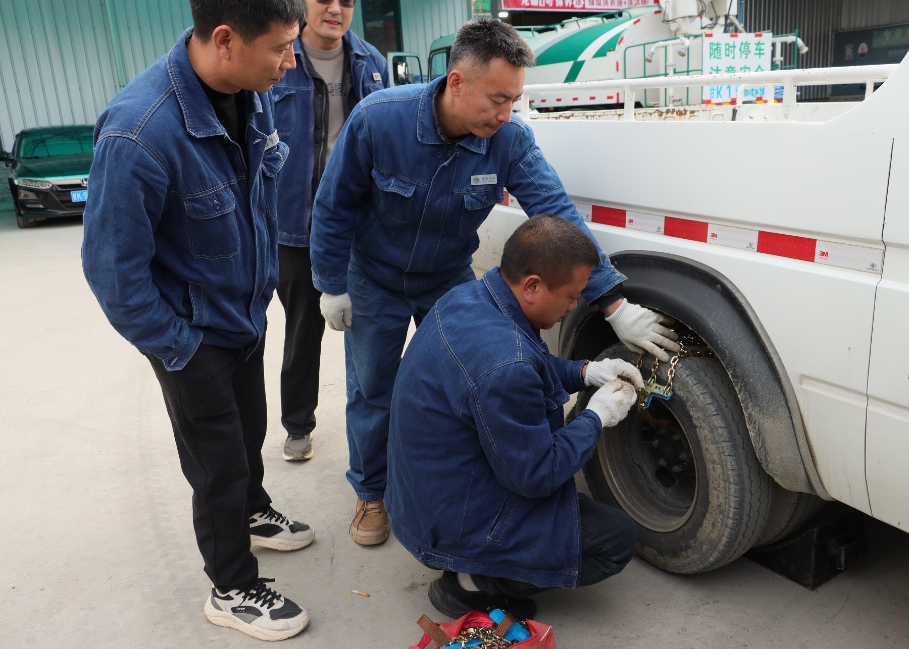 在應(yīng)急處置演練板塊,模擬車(chē)輛行駛途中突發(fā)故障、爆胎、冬季雨雪天氣等場(chǎng)景,駕駛員們迅速響應(yīng),依照所學(xué)流程熟練更換輪胎、安裝防滑鏈,有條不紊高效完成應(yīng)急處置,進(jìn)一步提升實(shí)戰(zhàn)應(yīng)急能力。