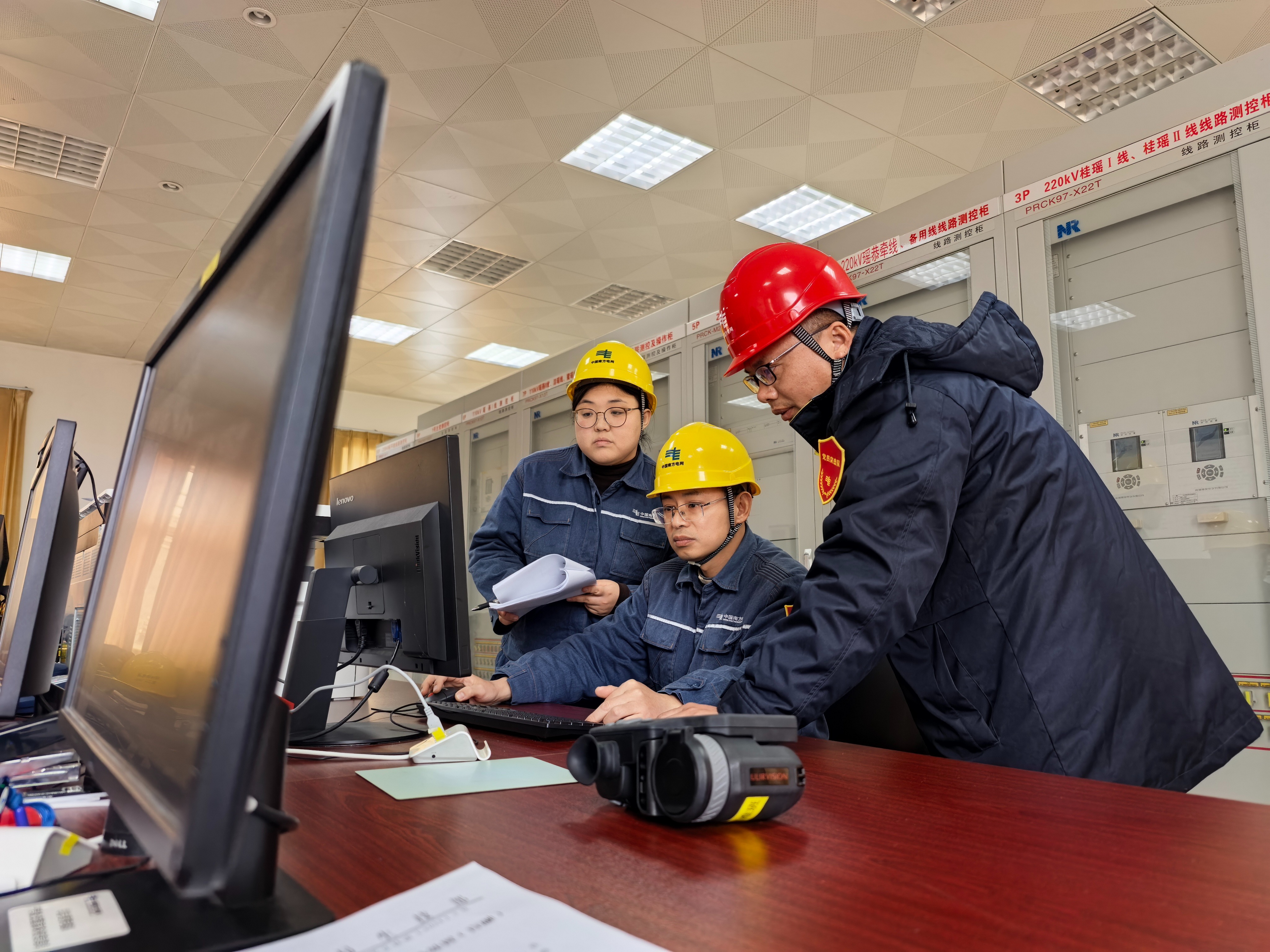 12月13日,南方電網(wǎng)廣西桂林供電局對(duì)110千伏蜜瑤線開展直流融冰,工作人員通過監(jiān)測(cè)預(yù)警系統(tǒng)監(jiān)測(cè)線路融冰情況。莫希濤 攝