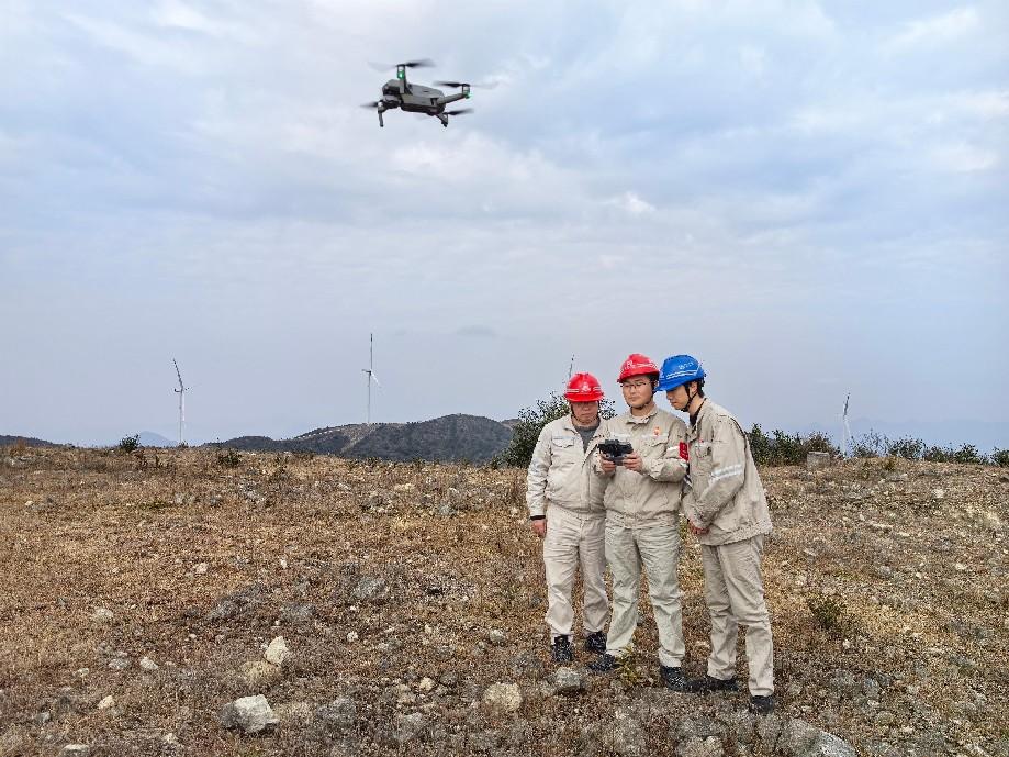 現(xiàn)場氣溫低至-2攝氏度,他們熟練地操作無人機(jī),朝著風(fēng)機(jī)側(cè)上方飛去。相比望遠(yuǎn)鏡眺望,無人機(jī)上的超高清攝像頭能夠精細(xì)查看100多米高風(fēng)機(jī)的細(xì)節(jié),他們一人操作,一人詳細(xì)記錄。山上的風(fēng)凜冽,凍僵的手落筆很難,寫下的字更大更歪斜。