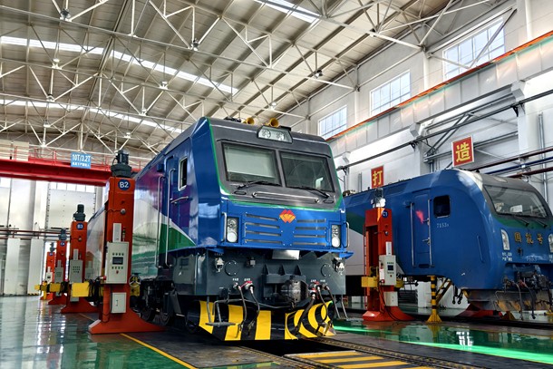 國內(nèi)首臺重載運輸干調(diào)一體化電電雙源制大功率機車正在進行C1修。