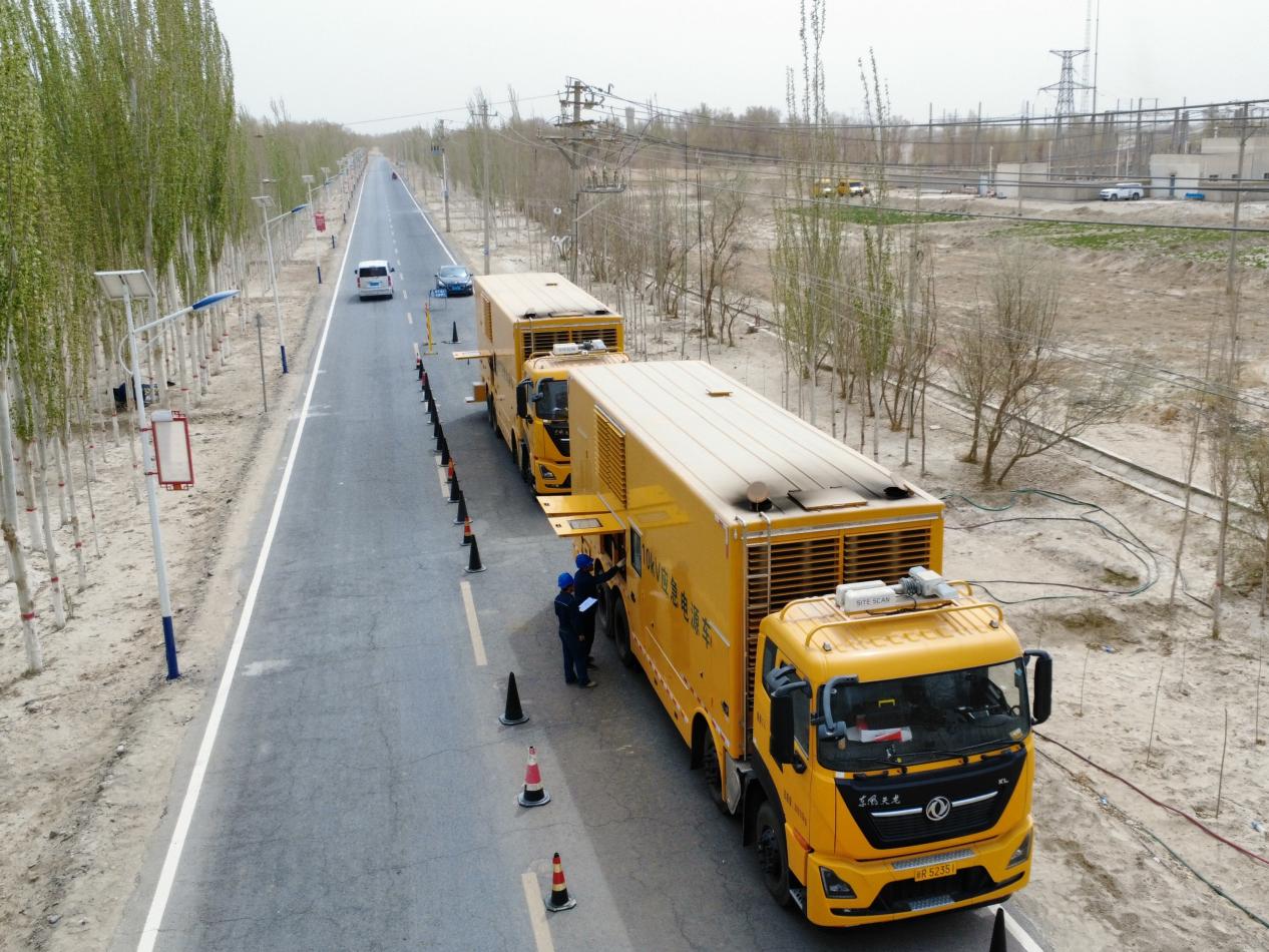 據(jù)了解,民豐220千伏尼雅變電站110千伏送出工程期間,民豐縣轄區(qū)110千伏安迪爾變、35千伏紅柳變、35千伏亞通古孜變3座變電站失壓,無法正常供電。為確保安迪爾鄉(xiāng)、蘭城鄉(xiāng)用戶可靠穩(wěn)定用電,該公司采用中壓發(fā)電車并網(wǎng)方式供電,即用4臺10千伏中壓發(fā)電車并網(wǎng)供電,提前將發(fā)電車預(yù)置并分別接入到3座變電站10千伏線路端。