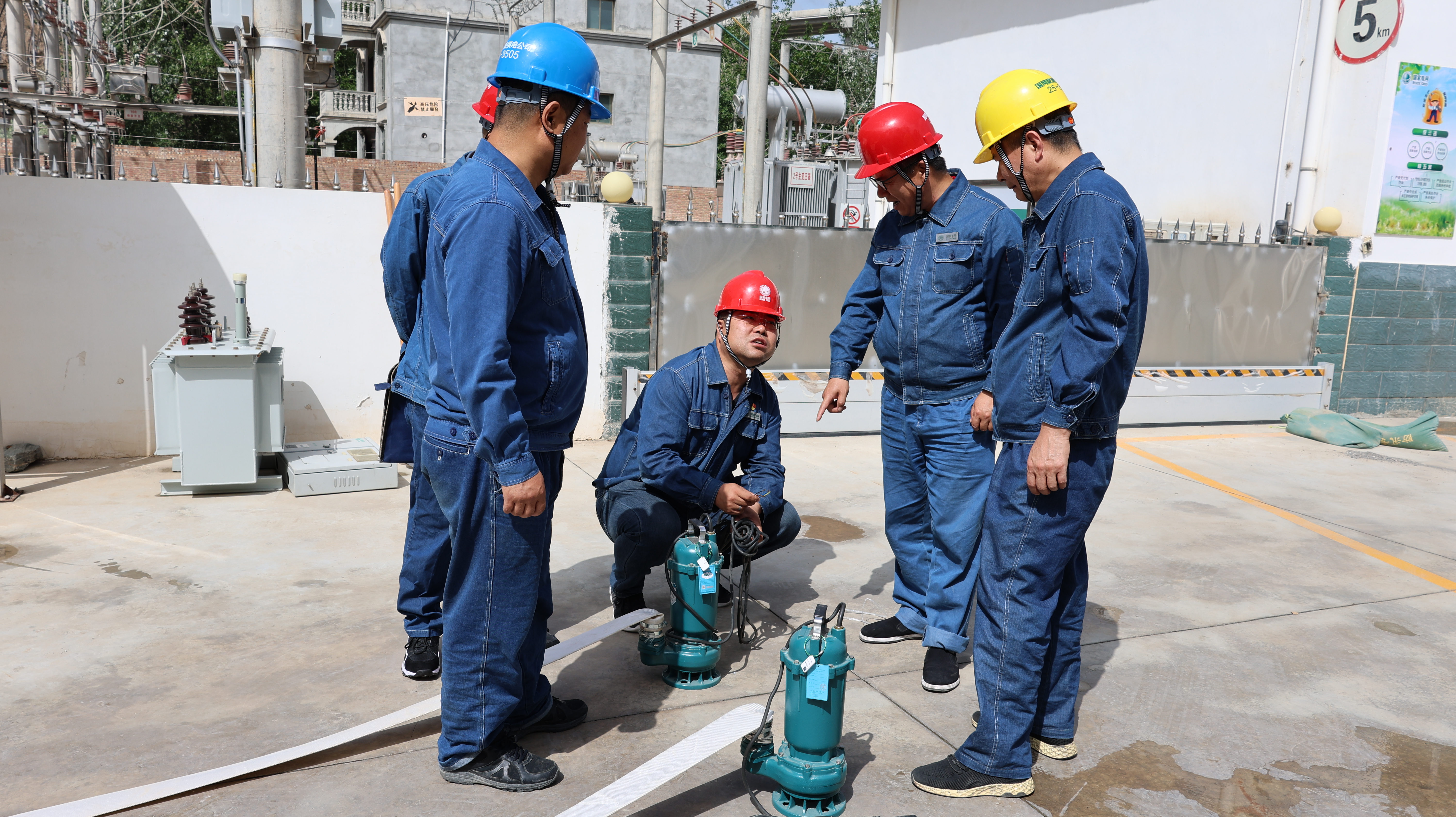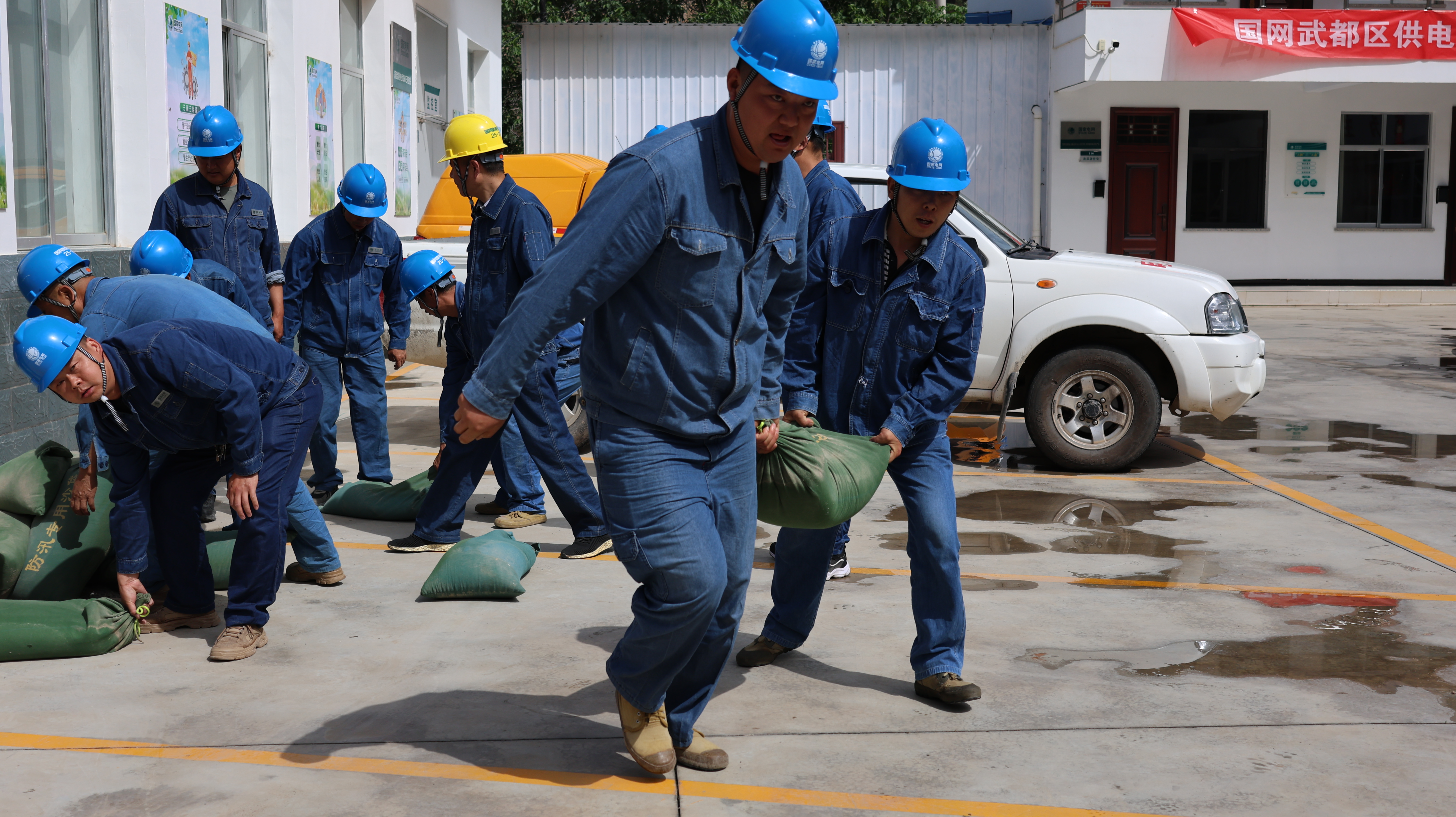 此次演練模擬5月22日,連續(xù)暴雨導(dǎo)致大岸廟站所周邊水位上漲,變電站電纜溝進(jìn)水,供電所低洼區(qū)域積水,可能威脅設(shè)備安全。監(jiān)測組發(fā)現(xiàn)站所外圍水位達(dá)警戒值(30厘米),立即向指揮組報告,啟動《防汛應(yīng)急預(yù)案》,指揮組下達(dá)指令,迅速集結(jié)應(yīng)急搶險隊伍,并組織搶險人員帶上防汛搶險工具、物資爭分奪秒趕赴現(xiàn)場,支援防汛搶險。