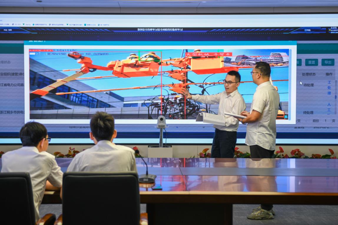 國網(wǎng)浙江電科院技術(shù)人員正在對“虛擬安全員”篩選出的高風(fēng)險作業(yè)情況進行分析。劉廣擴 攝