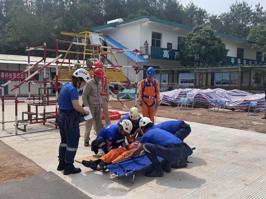 實戰(zhàn)環(huán)節(jié)嚴格落實“五備三報一救護”的要求,率先開展深基坑人工挖孔樁基礎作業(yè)中毒窒息應急救援演練。演練模擬井下作業(yè)人員突發(fā)中毒窒息險情,進行了從現(xiàn)場班組成員第一時間上報應急工作小組、開展現(xiàn)場急救到傷員轉(zhuǎn)運送醫(yī)的全流程演練。此次實景演練在藍天救援隊的協(xié)作下順利完成,檢驗多部門協(xié)同響應機制與救援裝備實戰(zhàn)效能,有效強化現(xiàn)場作業(yè)人員風險防范意識,切實提升一線隊伍應急風險處置能力,為工程安全管理夯實基礎。