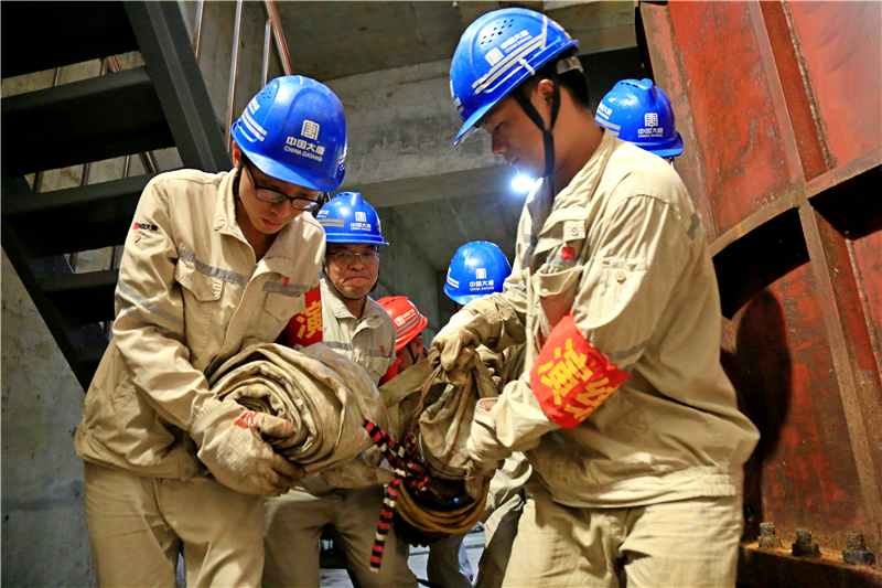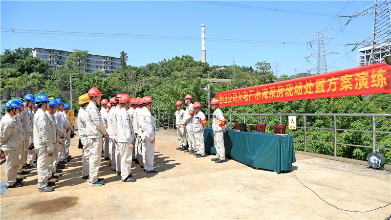 為進一步提升應(yīng)對突發(fā)事故的應(yīng)急處置能力,檢驗和完善應(yīng)急預(yù)案的科學(xué)性與實用性,近日,龍灘水電開發(fā)有限公司合山發(fā)電公司開展了一次水淹泵房現(xiàn)場處置演練。本次演練模擬了真實場景下的突發(fā)事件應(yīng)對過程,旨在檢驗該公司各級人員對水淹泵房現(xiàn)場處置方案的熟悉程度及應(yīng)急處理能力。此次演練場景設(shè)定為3號機組帶負(fù)荷600兆瓦運行,670兆瓦機組A、B循環(huán)水泵運行。循環(huán)泵房運行值班員在巡檢時,發(fā)現(xiàn)670兆瓦機組循環(huán)水泵房水泵層內(nèi)地板被淹沒,排污坑兩臺排污泵雖已自動啟動抽水,但無法滿足排水需求,水位仍在緩慢持續(xù)上漲。值班員手動啟動備用排污泵也未成功,且因水位過高無法入內(nèi)查找漏點,隨即電話匯報值長。