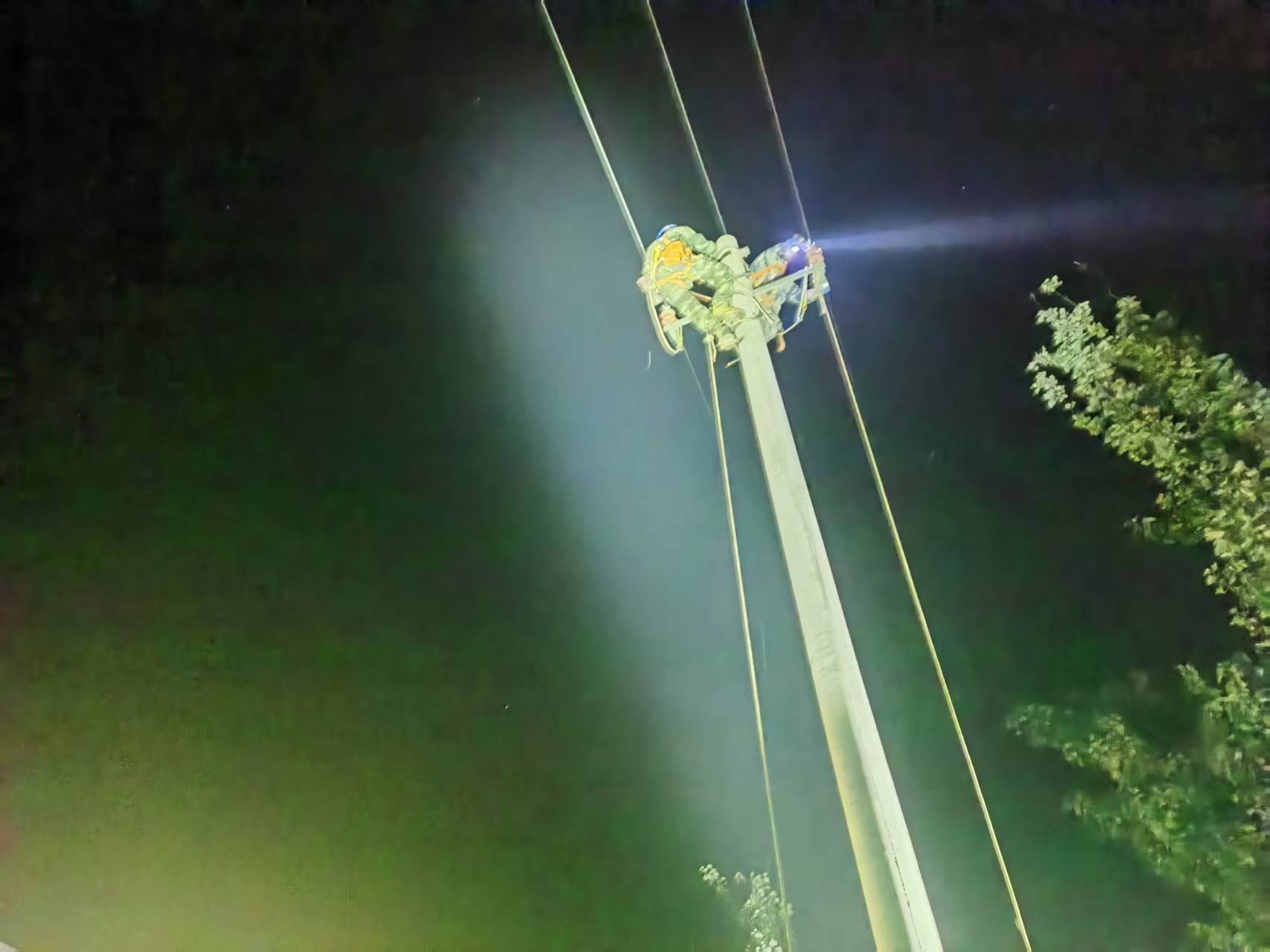 夜色中,搶修人員穿著浸透的工裝,在齊膝深的泥水里架設(shè)鉆孔機(jī)。經(jīng)過10小時(shí)奮戰(zhàn),一條300米電纜終于橫跨河道,截至30日凌晨5時(shí)50分搶修完畢。隊(duì)員們臉上已分不清是露水還是汗水?!翱吹轿C(jī)解除,再累也值了!”搶修人員邊擦著臉上的汗水邊說。此刻,他們的雨靴里已積滿半靴泥漿。