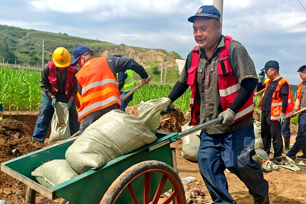 11點(diǎn)30分,搶險車緩緩駛離現(xiàn)場。透過車窗,大家看著90號電桿在陽光下傲然挺立,兩道沙袋墻像忠誠的衛(wèi)士守在旁邊,每個人的臉上都露出了疲憊卻自豪的笑容。這場五小時的鏖戰(zhàn),三岔供電人用滾燙的汗水,在兩米生死線上澆鑄起鋼鐵防線,更在暴雨初歇的晨光里,刻下了“守土有責(zé)”的鏗鏘誓言。