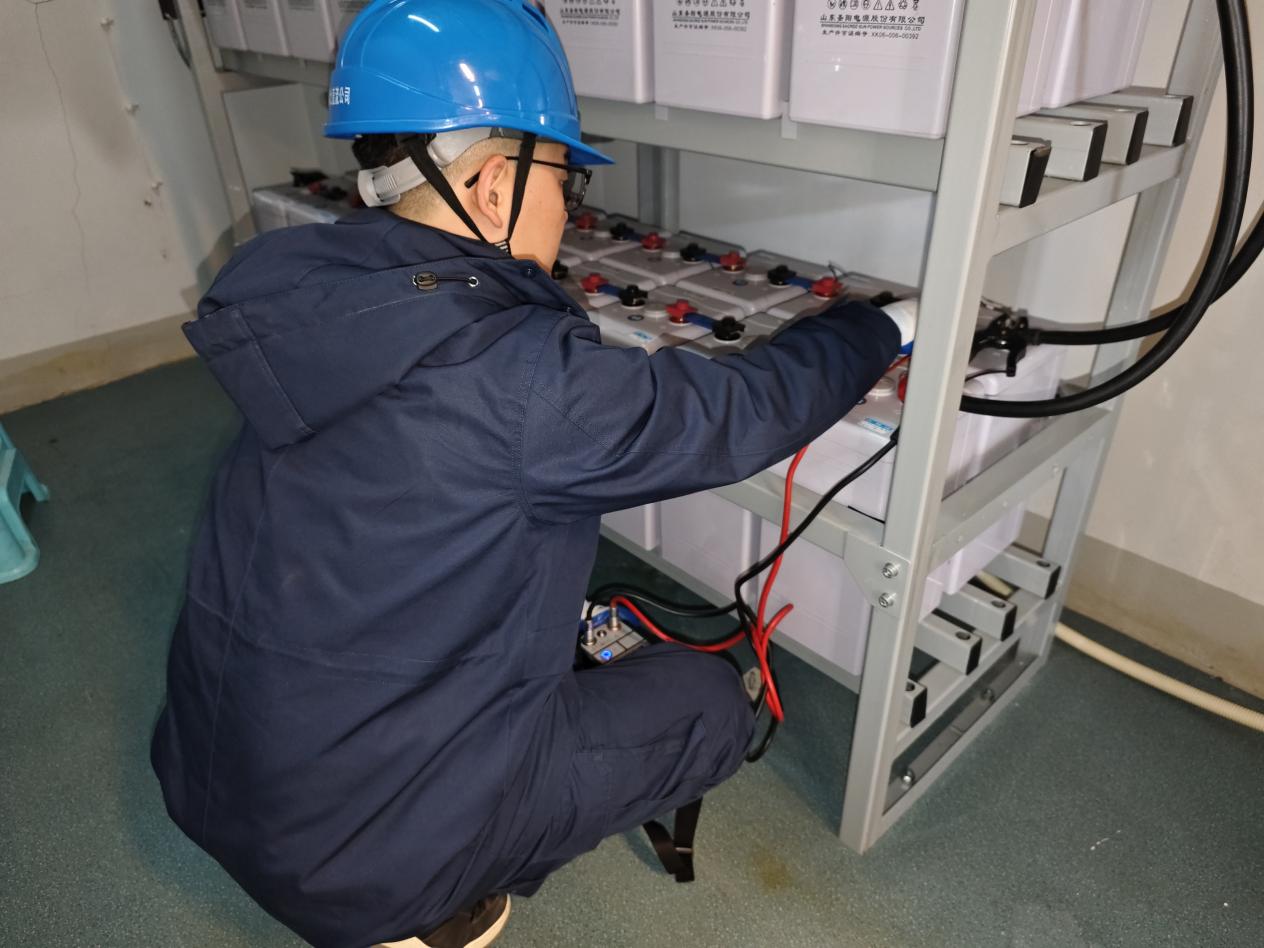 1月21日,國網(wǎng)湖北直流公司檢修人員向萌冉在±500千伏江陵換流變電站開展低壓直流系統(tǒng)蓄電池檢測。鄧康敏 攝