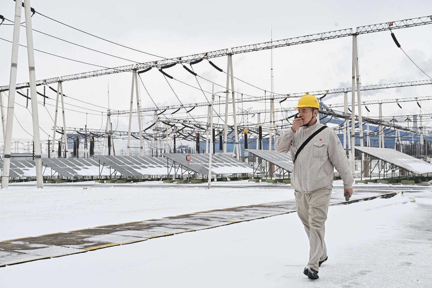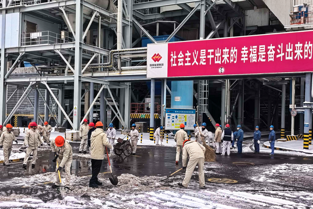 圖為宿州電廠清掃主廠房前道路積雪