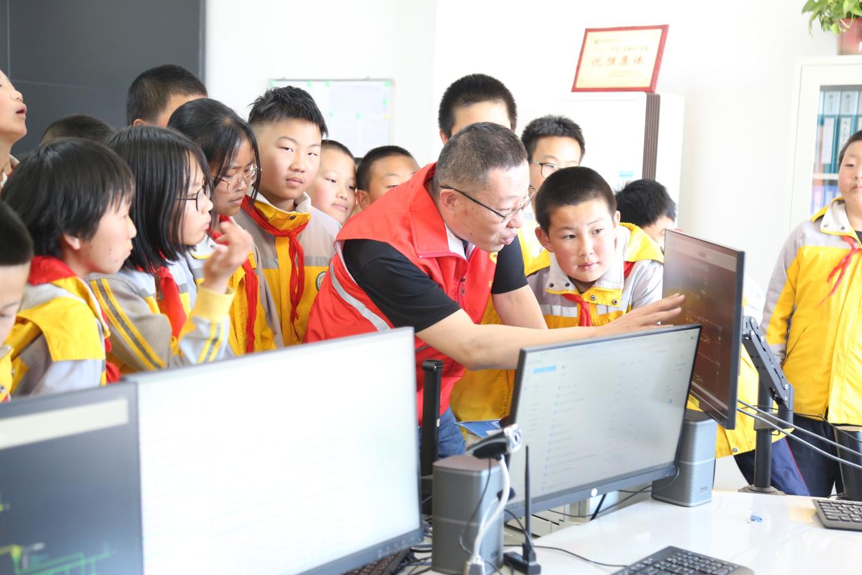 在調(diào)控班,同學們走進電力科普小課堂,志愿者通過調(diào)度監(jiān)控大屏向同學們講授電是如何產(chǎn)生、變電柜的作用、輸電到家的總體過程等。以現(xiàn)場采訪問答的方式,向?qū)W生們講解太仆寺旗電網(wǎng)分布情況。同時,向同學們講解生活中用電安全、電力設(shè)施保護、節(jié)約用電等相關(guān)知識,號召同學們從小養(yǎng)成節(jié)約用電的良好習慣。整個過程,同學們?nèi)褙炞⒌伛雎犞v解,時而側(cè)首思考、時而舉手提問,與志愿者積極互動。