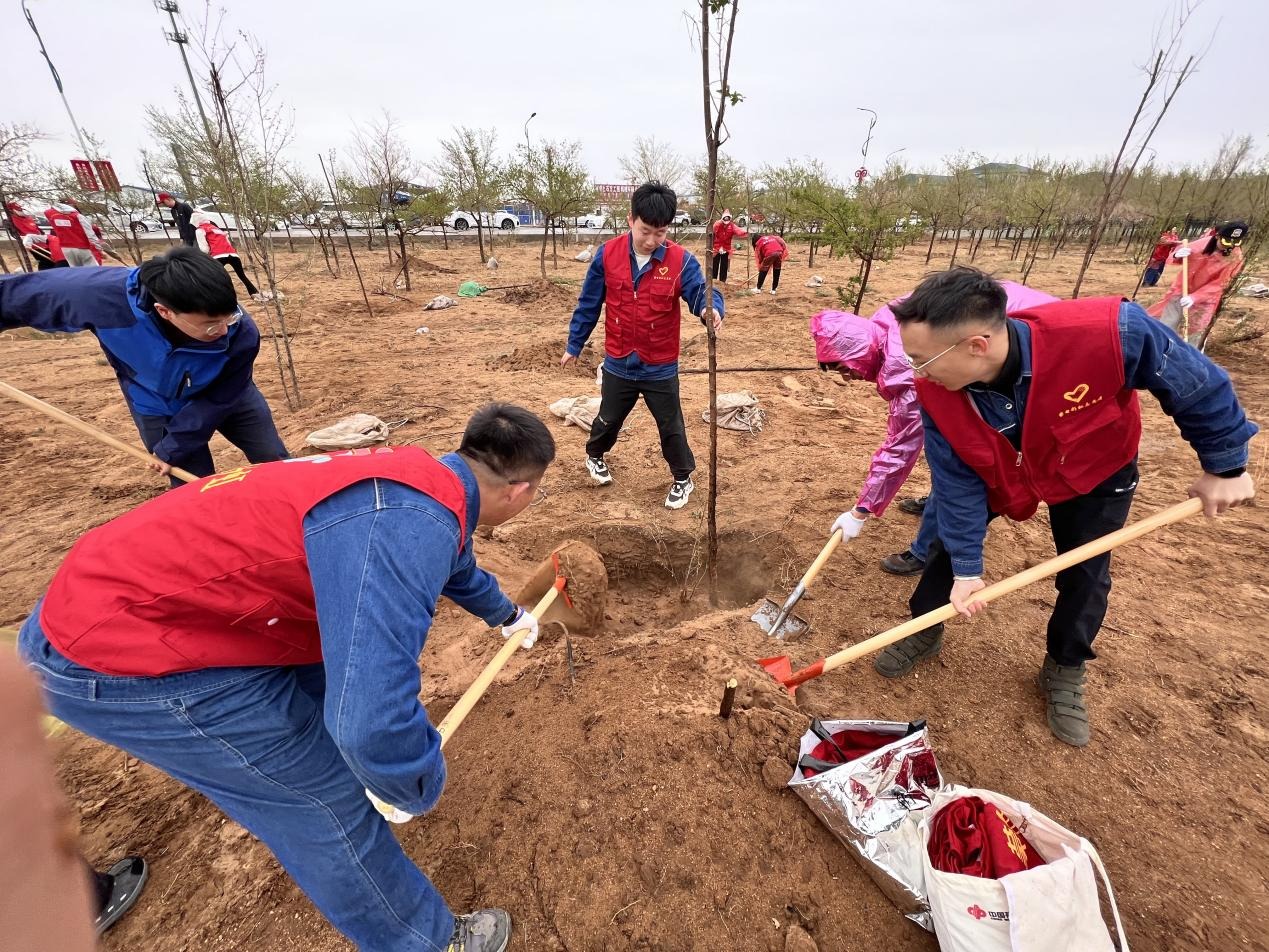 植樹活動(dòng)現(xiàn)場,大家熱情高漲、干勁十足,積極投身到植樹護(hù)綠行動(dòng)中來,搬運(yùn)樹苗、挖坑埋苗、揮鍬填土。彼此相互協(xié)作,勁頭滿滿,每個(gè)環(huán)節(jié)都井然有序、細(xì)致認(rèn)真,現(xiàn)場呈現(xiàn)出一派熱火朝天的勞動(dòng)景象。青年的青春活力與樹苗的蓬勃生機(jī)相交匯,形成一道亮麗的風(fēng)景線,經(jīng)過大家的共同努力,一棵棵新栽的樹苗迎風(fēng)挺立,煥發(fā)出蓬勃生機(jī),為春天的田野增添幾分新綠。