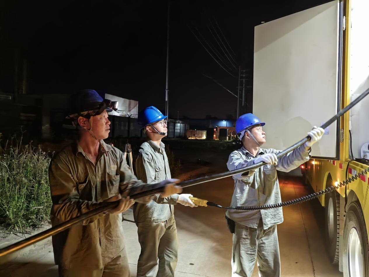 中國能源新聞網(wǎng)訊(羅亭然 袁藝哲 李旭飛)5月14日凌晨4點,在湖北省天門市岳口鎮(zhèn)工業(yè)園10千伏燈319峰嶺線03號電桿旁,一輛全身亮黃色、長達16米的3000千瓦時發(fā)電車正轟鳴作響,國網(wǎng)荊州變電檢修分公司開關(guān)二班班員袁藝哲正在發(fā)電車操作機旁監(jiān)視運行參數(shù),保障發(fā)電車平穩(wěn)運行。