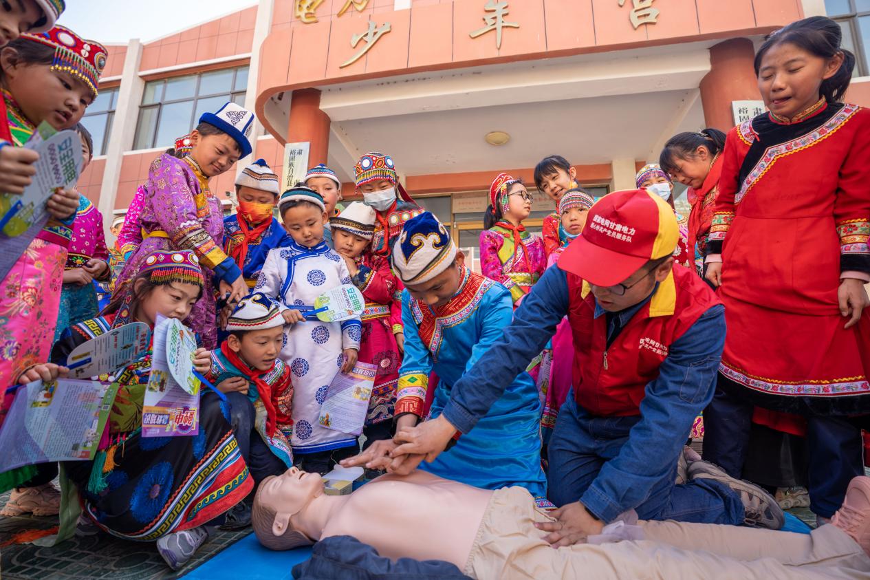 志愿者吳儒博在明花電力希望小學(xué)開展急救培訓(xùn)。潘磊攝