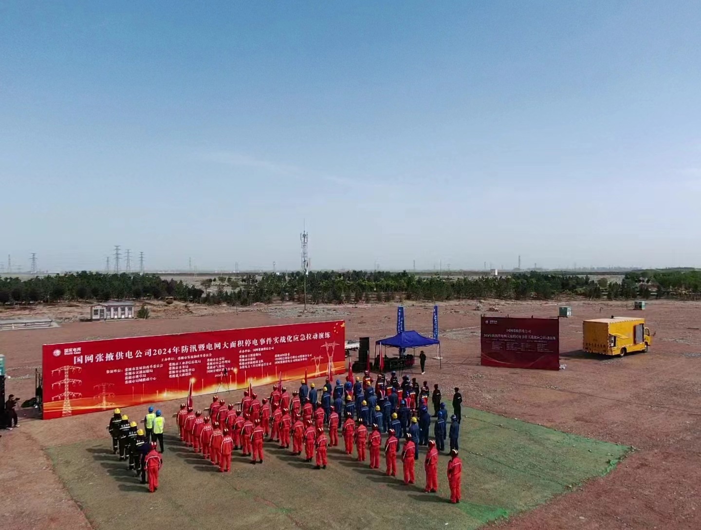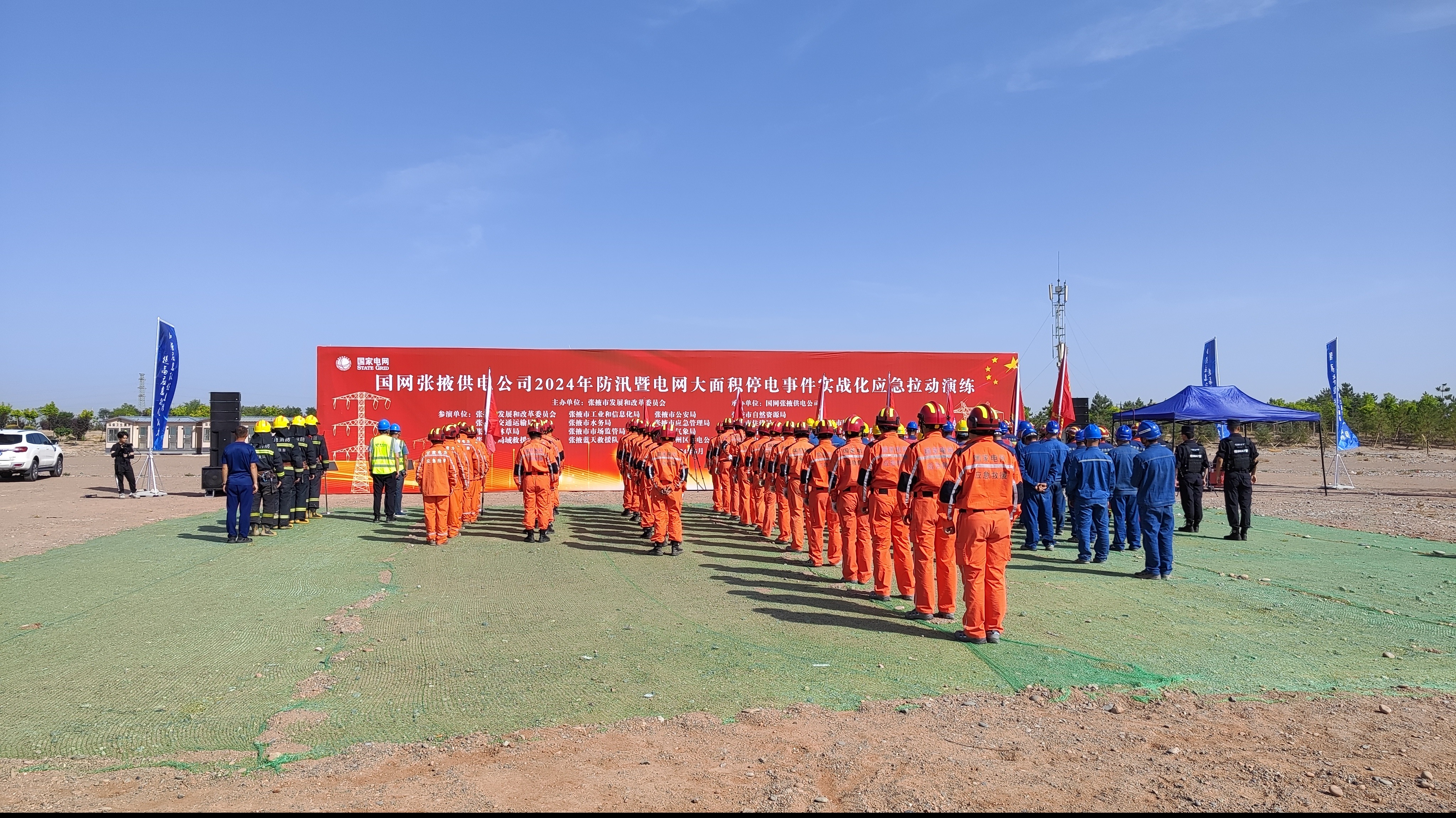 本次演練采用桌面+實戰(zhàn)演練方式,圍繞張掖電網(wǎng)安全運(yùn)行的主要風(fēng)險,預(yù)設(shè)背景為模擬張掖市發(fā)生大到暴雨降水過程,民樂、肅南將出現(xiàn)雷暴天氣,累計降雨量達(dá)35毫米以上,引發(fā)的城鄉(xiāng)積水、山洪、滑坡、泥石流、中小河流洪水等次生災(zāi)害。導(dǎo)致供電區(qū)域內(nèi)大量輸配電線路倒桿斷線,電力設(shè)施嚴(yán)重受損。用戶供電中斷,民樂、肅南縣域相繼停電,造成一般電網(wǎng)大面積停電事件,需立即開展防汛暨大面積停電應(yīng)急搶修搶險工作。災(zāi)害發(fā)生后,經(jīng)國網(wǎng)張掖供電公司防汛應(yīng)急辦分析研判,決定立即啟動Ⅱ級應(yīng)急響應(yīng),成立現(xiàn)場指揮部,緊急調(diào)派專業(yè)搶修隊伍、應(yīng)急救援基干分隊開展搶險搶修,并派應(yīng)急搶修專家小組快速前往災(zāi)區(qū)指導(dǎo)受災(zāi)電網(wǎng)搶修恢復(fù)工作。經(jīng)市應(yīng)急辦批準(zhǔn),張掖市消防救援支隊、張掖區(qū)域救援中心、中國電信張掖分公司、張掖藍(lán)天救援隊趕赴現(xiàn)場開展支援搶險。通過演練檢查大面積停電應(yīng)急處置預(yù)案的部署和落實情況,檢驗公司各部門、各單位突發(fā)事件快速響應(yīng)和應(yīng)急管理水平。