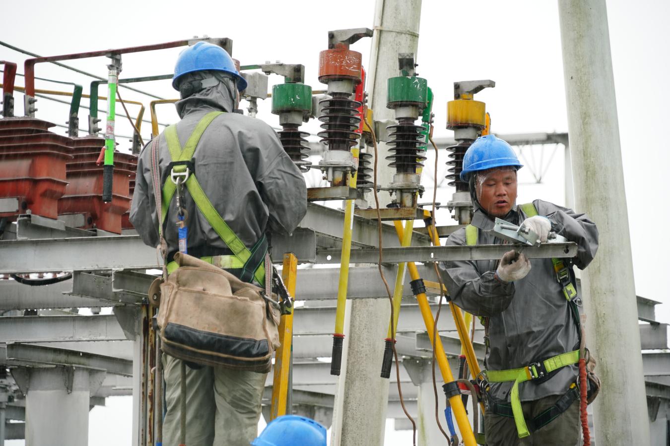 突擊隊(duì)作業(yè)人員冒雨奔赴現(xiàn)場(chǎng)勘查,開(kāi)辟綠色通道落實(shí)用電接入方案,克服時(shí)間緊、任務(wù)重、道路泥濘、作業(yè)所需物資難以搬運(yùn)等困難,兵分兩路,一路進(jìn)行變電站內(nèi)設(shè)備倒閘操作和電纜頭制作安裝,一路到泵站高壓室進(jìn)行開(kāi)關(guān)柜交接試驗(yàn)和保護(hù)裝置定值整定校驗(yàn)等工作。