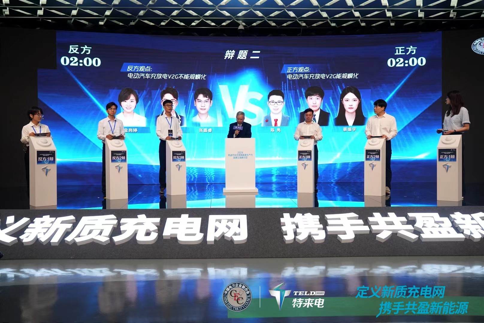 在辯論環(huán)節(jié),來自企業(yè)、科研單位和高校的18名辯手圍繞“車企與充電企業(yè),誰來守護電動汽車充電安全”“電動汽車充放電V2G能否規(guī)?;??”“公共超充能否滿足大規(guī)模乘用車充電需求?”三大熱點辯題展開辯論,中國能源研究會智慧能源與綠色交通專業(yè)委員會副主任委員賈俊國、工業(yè)和信息化部產業(yè)發(fā)展促進中心智能電網專委會主任劉建明、億瓦研究院創(chuàng)始人黃山分別擔任辯題主持人。