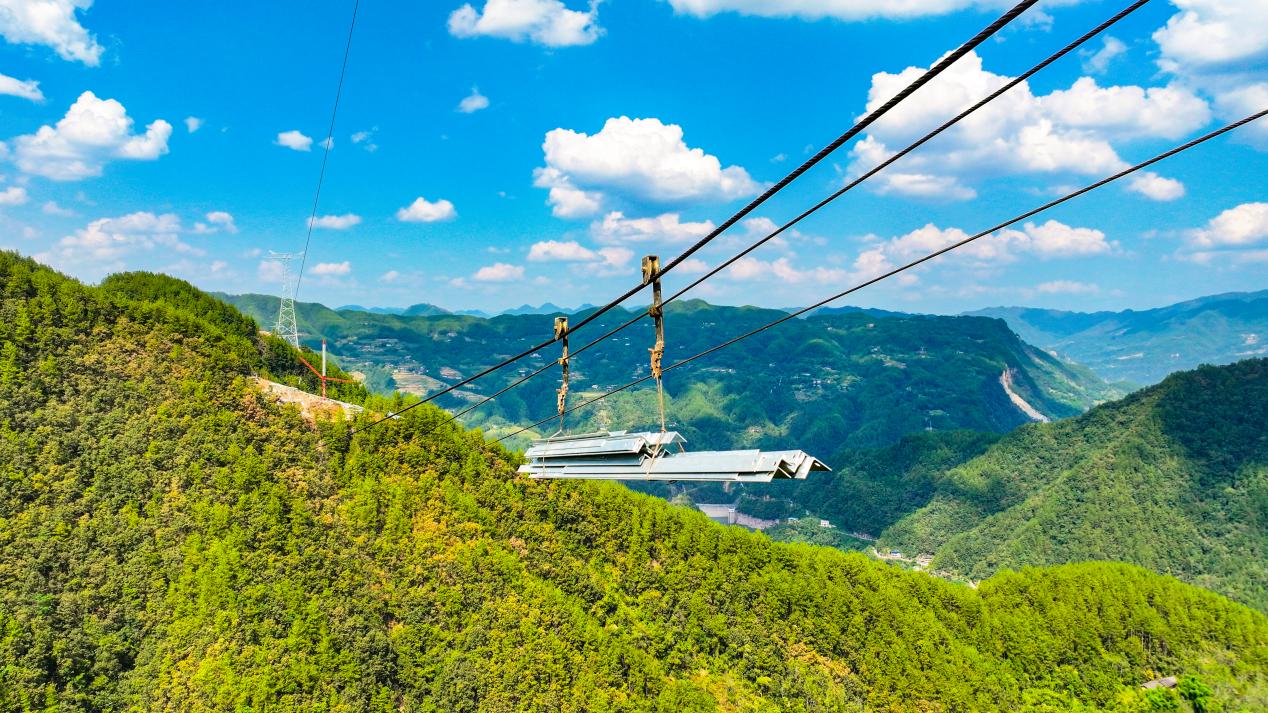 “我們?cè)跇?biāo)段全線共架設(shè)41條索道,涉及71基塔位,索道長(zhǎng)度共計(jì)超過40千米。不僅如此,施工項(xiàng)目部前期還精心規(guī)劃索道路徑,采用多跨單索循環(huán)索道運(yùn)輸方式,力爭(zhēng)用最少索道覆蓋最多塔位。”該標(biāo)段施工項(xiàng)目總工李淵介紹。以N3345~N3349號(hào)鐵塔為例,這條索道長(zhǎng)2200米,一條索道串聯(lián)起五基鐵塔的材料運(yùn)輸,極大提升了物資運(yùn)輸效率,也在最大限度上保護(hù)了生態(tài)環(huán)境。