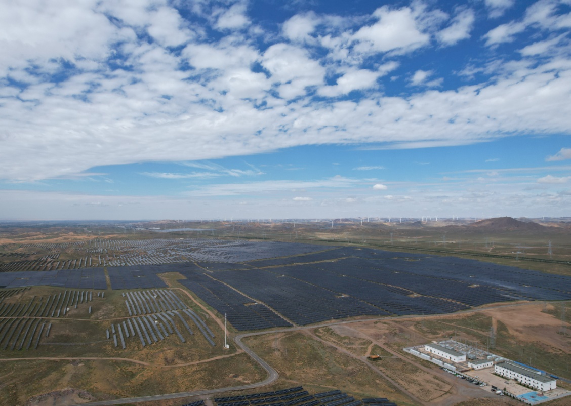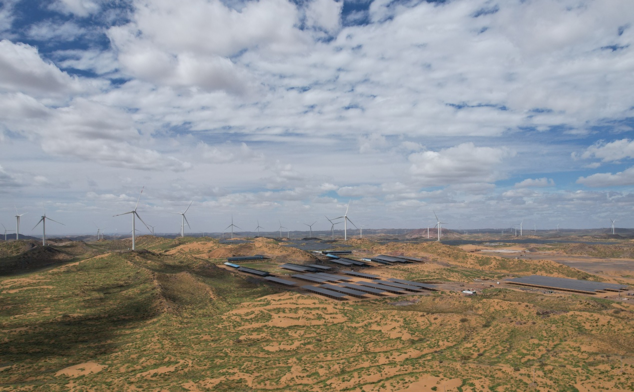 2024年9月13日,俯瞰位于寧夏中衛(wèi)市中寧縣境內(nèi)的一處戈壁灘清潔能源發(fā)電站,風(fēng)機(jī)和光伏交相輝映,源源不斷輸送綠色能源。