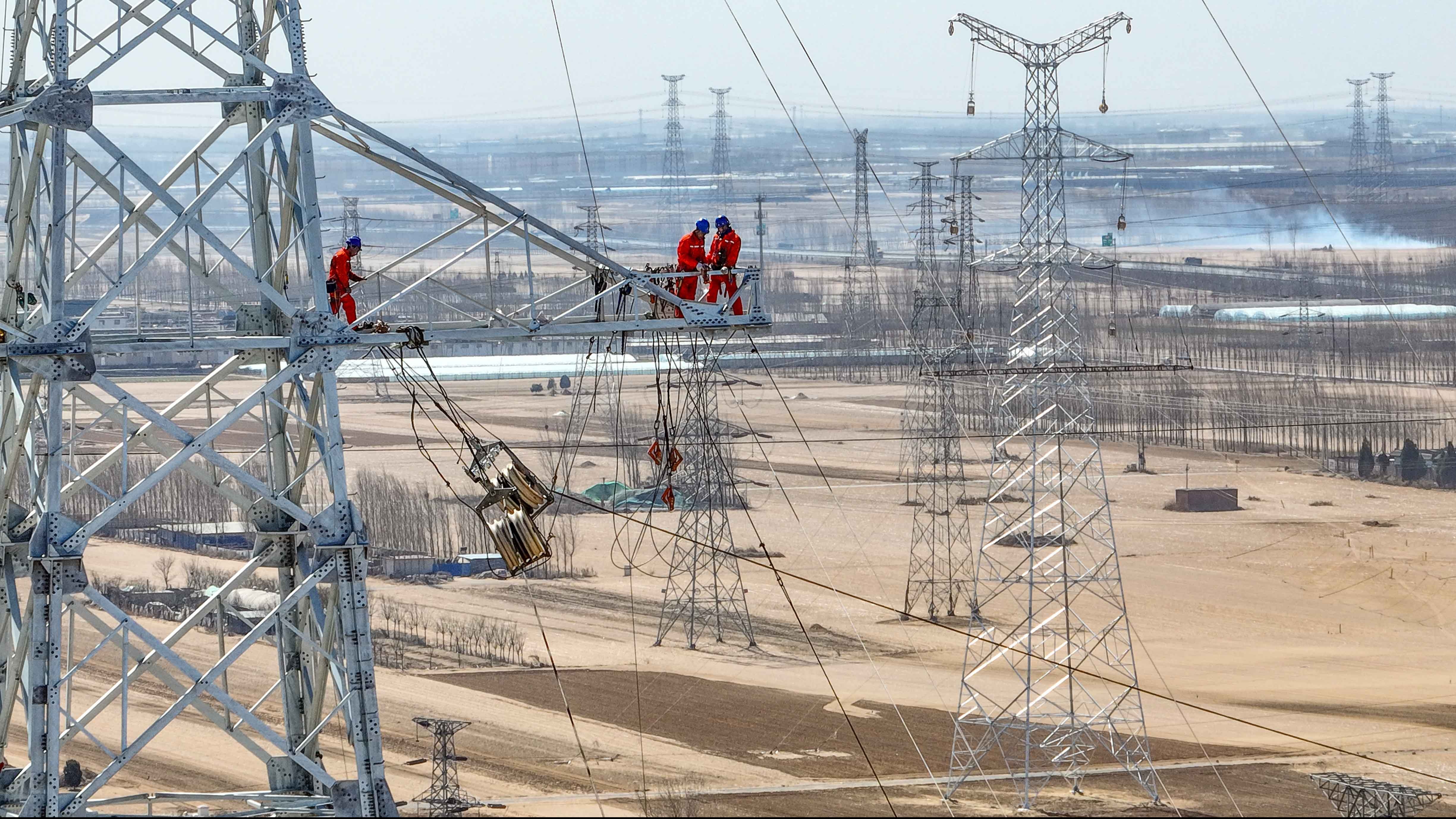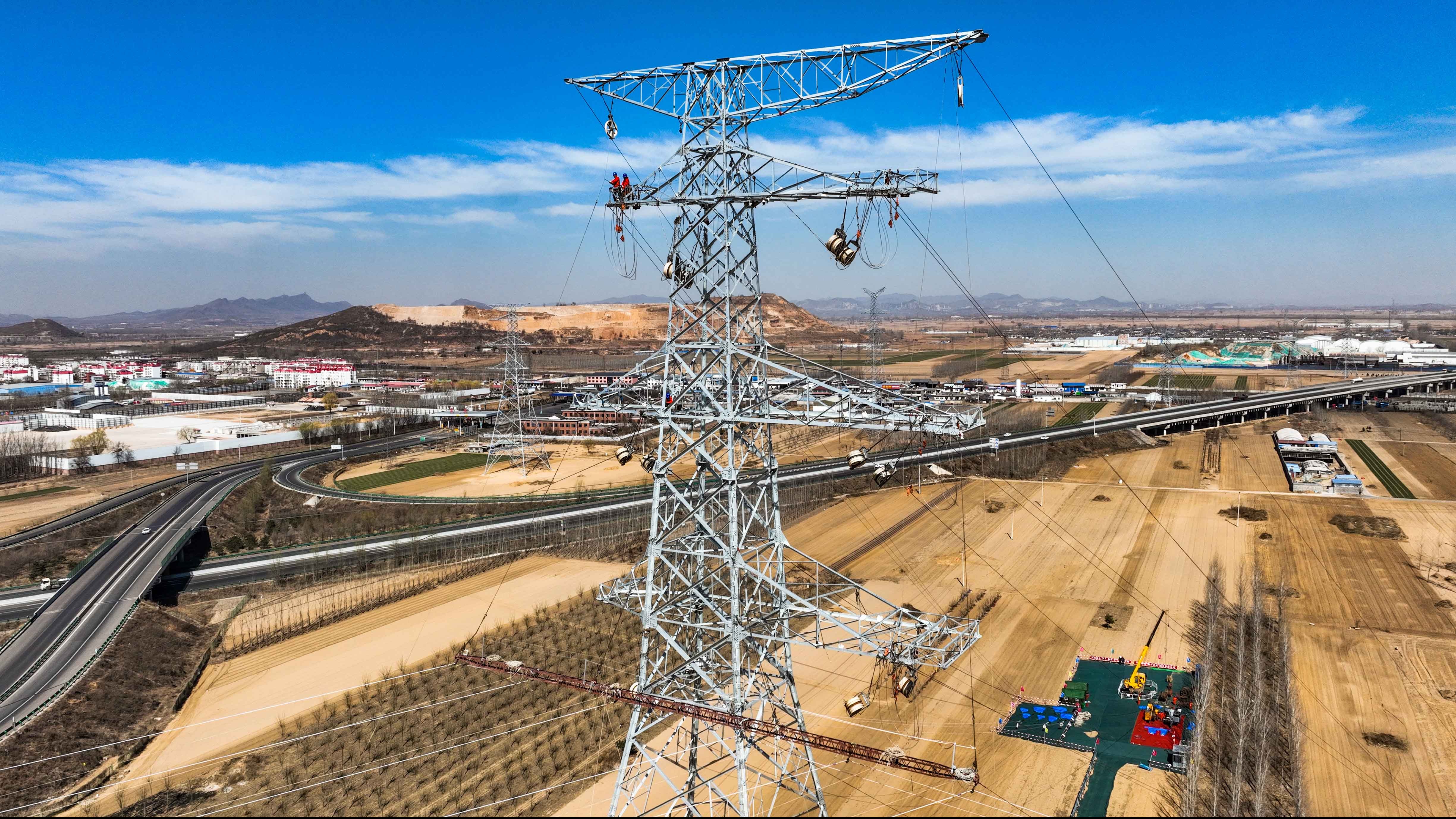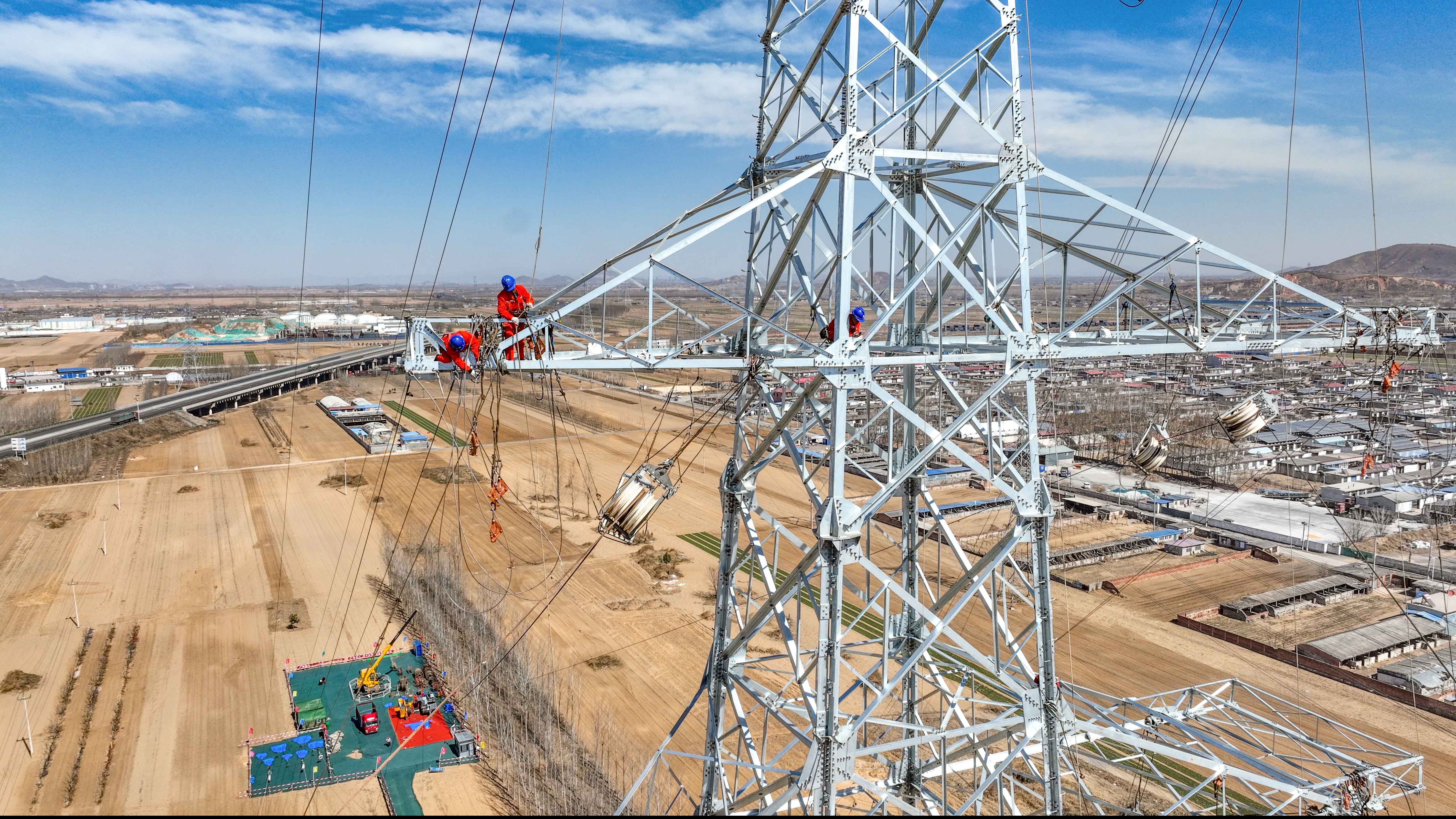 中國能源新聞網(wǎng)訊(李崢)3月24日,河北唐山,北京送變電有限公司施工的承德東至灤縣雙回(第四通道)500(唐山段)N219塔基-N235塔基區(qū)段正在進行導(dǎo)線展放施工。