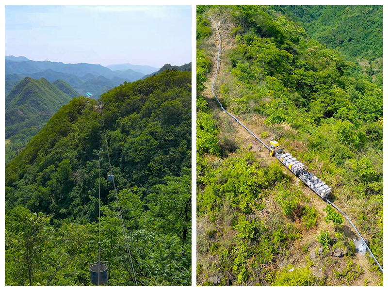 “山路不通,那就架起索道當(dāng)‘天梯’,物資運(yùn)輸照樣暢行無(wú)阻!”業(yè)主項(xiàng)目經(jīng)理管飛介紹,工地位于秦嶺余脈,山勢(shì)層巒疊嶂,面對(duì)車(chē)輛、騾馬均無(wú)法通行的險(xiǎn)峻地形,工程建設(shè)方創(chuàng)造性搭建空中運(yùn)輸通道,每日可運(yùn)輸50噸建設(shè)物資。