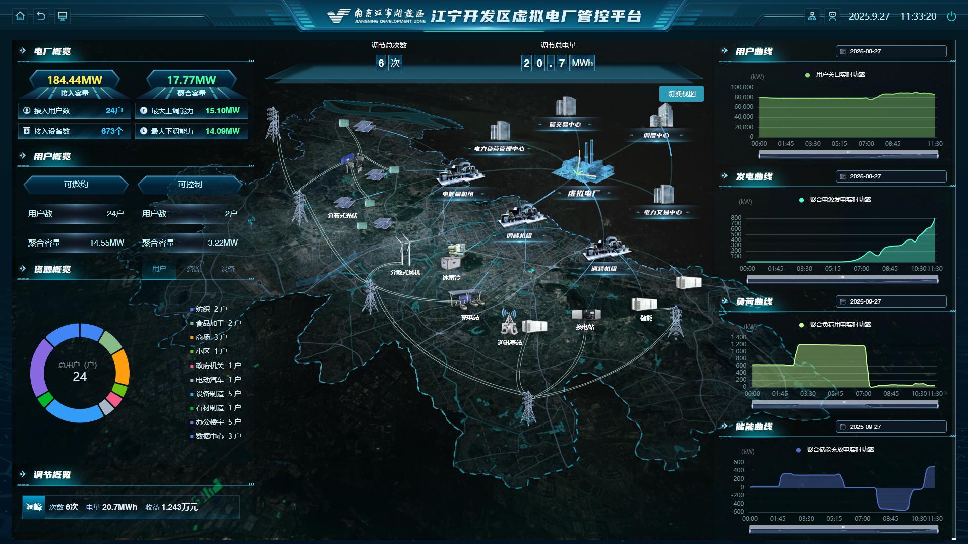 該公司的成立,標志著三方合作的項目“江寧開發(fā)區(qū)能碳虛擬電廠示范項目”正式邁入實體化市場運營新階段。項目綜合運用發(fā)電預測、負荷預測、價格預測、可調潛力分析、資源聚合、優(yōu)化調度、協(xié)調控制及交易輔助決策等核心技術,聚合區(qū)內分布式光伏、儲能、充電樁、空調負荷、冰蓄冷、電鍋爐、工業(yè)可調負荷等多元化靈活性資源,常態(tài)化參與需求響應、電力輔助服務及電力現(xiàn)貨等市場化交易,為用戶提供智能化、集約化的智慧用能服務。項目創(chuàng)新性提出“電碳耦合”與“配微協(xié)同”技術,構建區(qū)域多層協(xié)同的智慧能碳管控平臺,服務政府、園區(qū)及企業(yè)建立覆蓋全生命周期、全環(huán)節(jié)、全鏈條的智慧能碳管理系統(tǒng),實現(xiàn)碳足跡精準追溯,降低用能成本,有效提升能源綜合利用效率,推動區(qū)域碳排放強度持續(xù)降低。項目已接入各類用戶側資源規(guī)模達200兆瓦,并于2025年4月成功入選國家發(fā)展改革委全國第二批綠色低碳先進技術示范項目清單,成為國家級綠色低碳示范標桿。