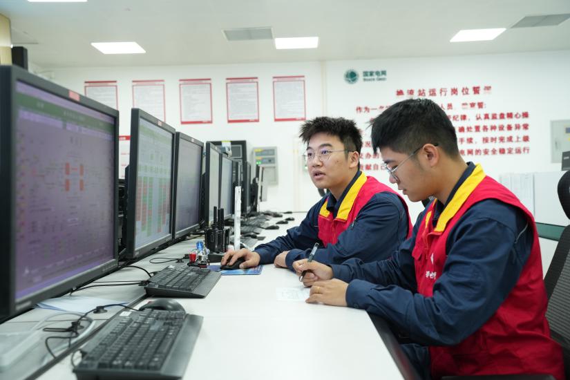 施州換流站運(yùn)維人員仔細(xì)檢查后臺(tái)事件信息與設(shè)備狀態(tài)。陳照源 攝