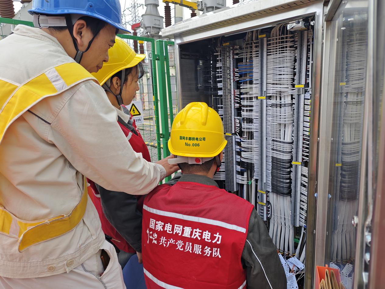 重慶豐都許明寺農(nóng)光互補項目110千伏送出工程投運前期,國網(wǎng)豐都供電公司二次班員工在110千伏保合變電站開展110千伏許保線保護及自動化調(diào)試工作。(吳鳳攝)