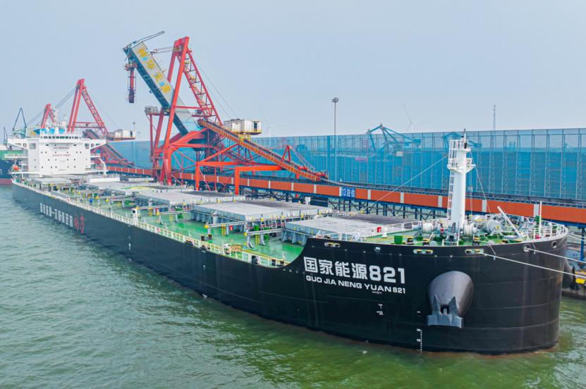 圖為“國家能源821”輪正緩緩駛離碼頭