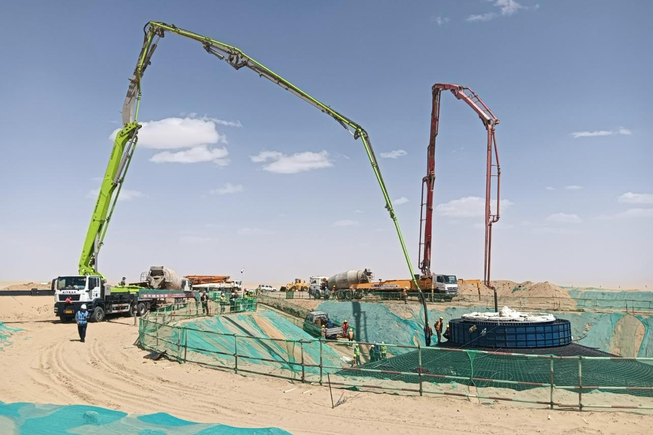 基礎澆筑作為風電工程的最關鍵部分,青海公司克服海拔高、風沙大、施工條件惡劣等諸多難題,從混凝土供應、澆筑時機把控、澆筑方案確定等進行合理安排,連續(xù)奮戰(zhàn)14個小時,順利完成單個基礎直徑22米、高度4.5米、中墩直徑6.6米的大體積圓盤式鋼筋混凝土基礎的連續(xù)澆筑工作。