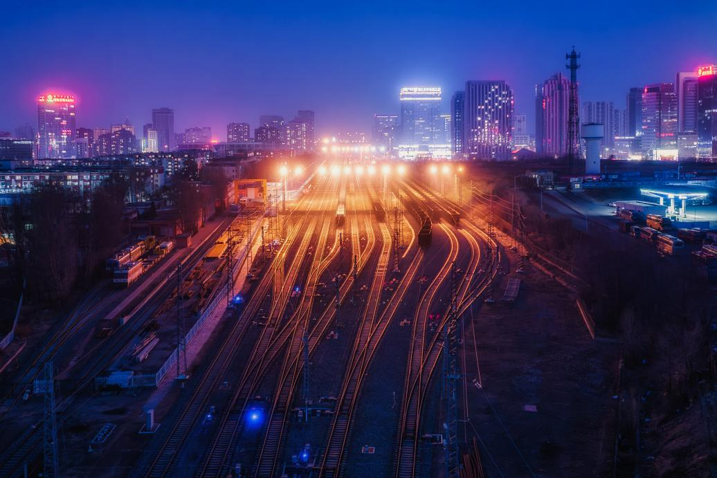 夜幕下,遠(yuǎn)方的城市燈火輝煌,與包神鐵路東勝站的燈光相互呼應(yīng),仿佛在訴說著這片土地的繁榮與發(fā)展。李尚昆 攝