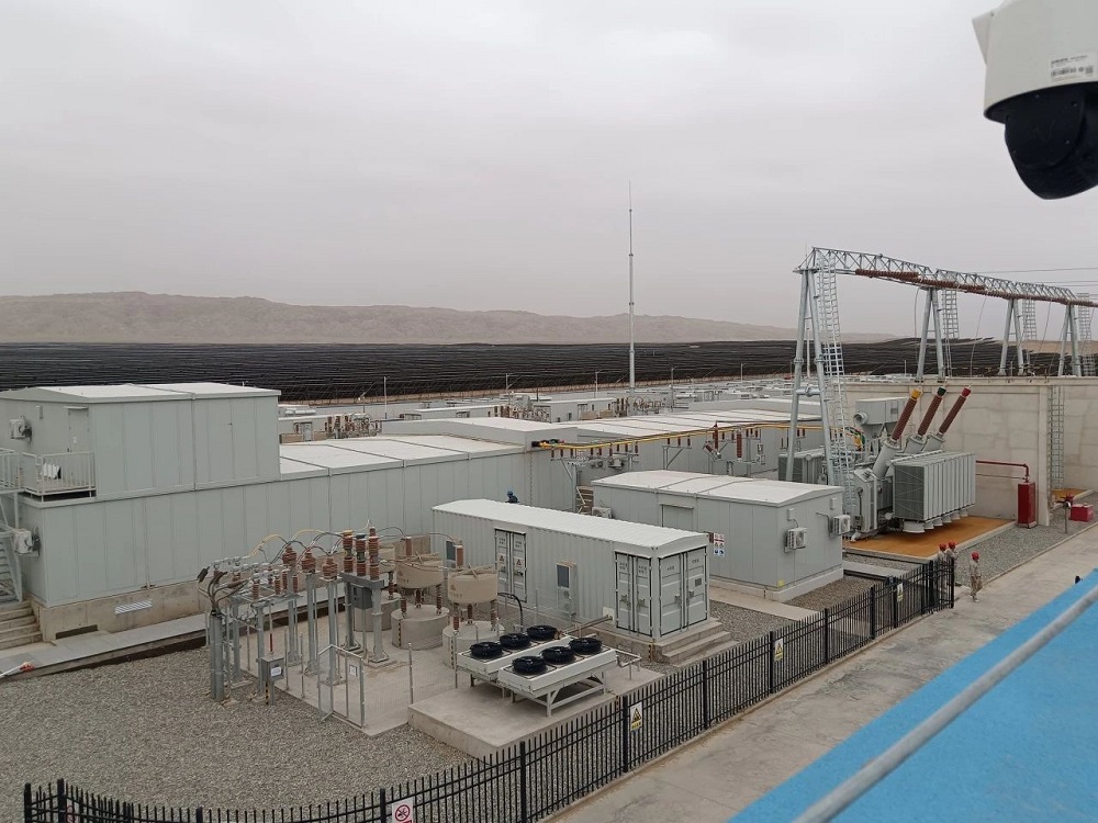 大唐昆玉二期光伏發(fā)電項(xiàng)目一標(biāo)段全容量包括125個(gè)3.2兆瓦發(fā)電單元,一共1250臺(tái)320千瓦組串式逆變器,新建儲(chǔ)能電站包含36臺(tái)變流升壓一體設(shè)備(PCS)及143臺(tái)電池艙,共經(jīng)4回集電線路接入擴(kuò)建升壓匯集站,均一次性帶電成功,設(shè)備運(yùn)行穩(wěn)定良好,參數(shù)正常。