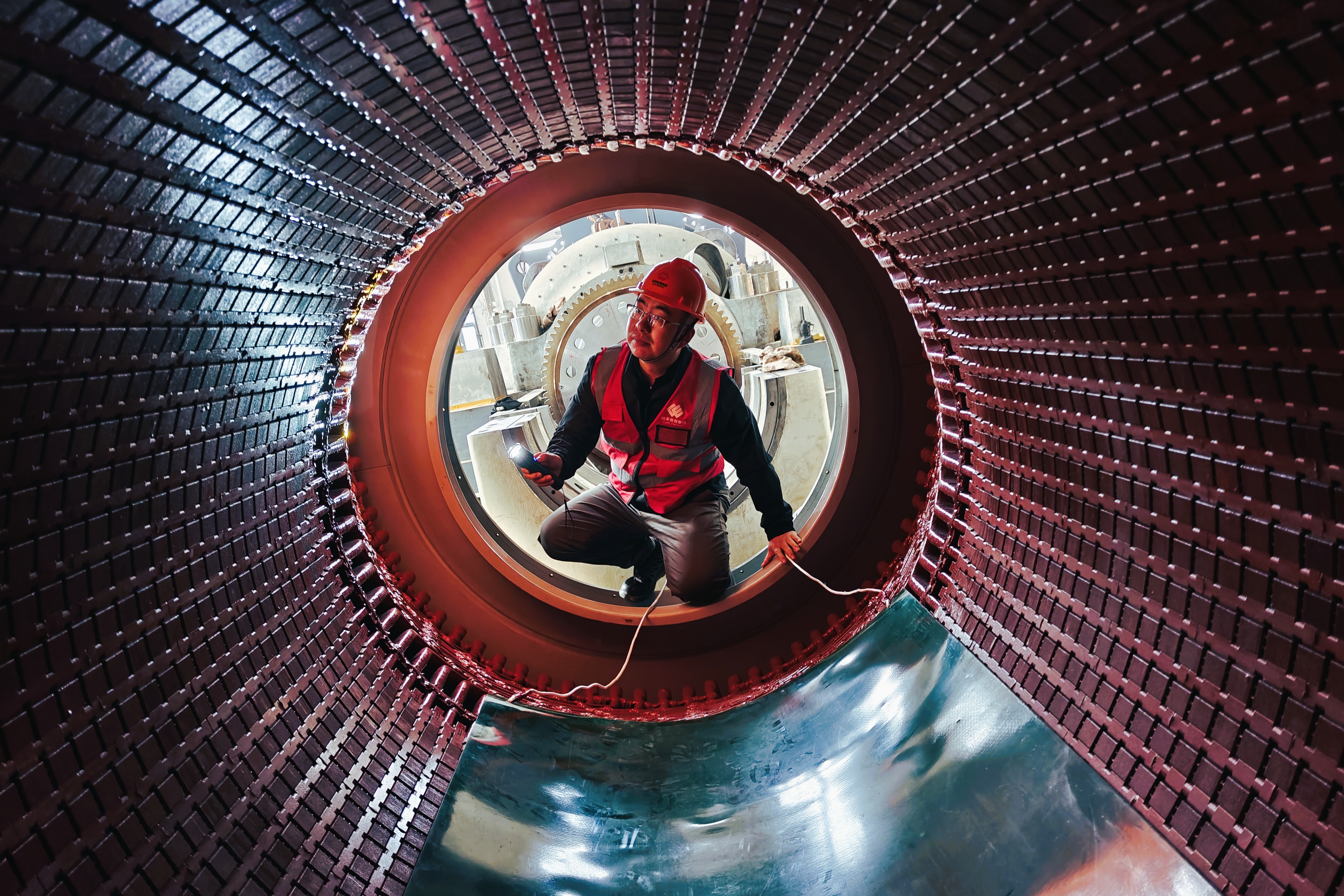工作人員在穿裝作業(yè)前對定子腔體進行清潔度檢查。