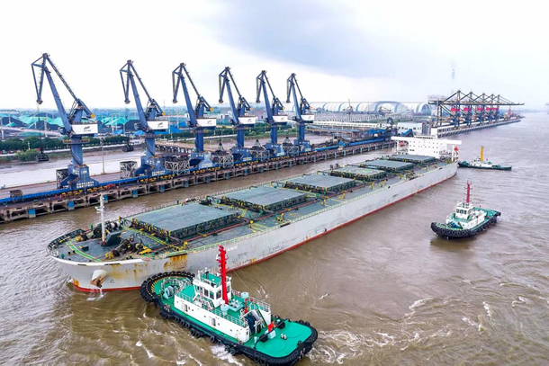 銷售集團華中分公司組織的煤炭資源在“海進江”中轉基地進行過駁作業(yè)。