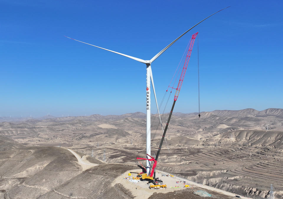 龍源電力寧夏海原100萬千瓦風(fēng)電項目首臺風(fēng)機(jī)吊裝完成。