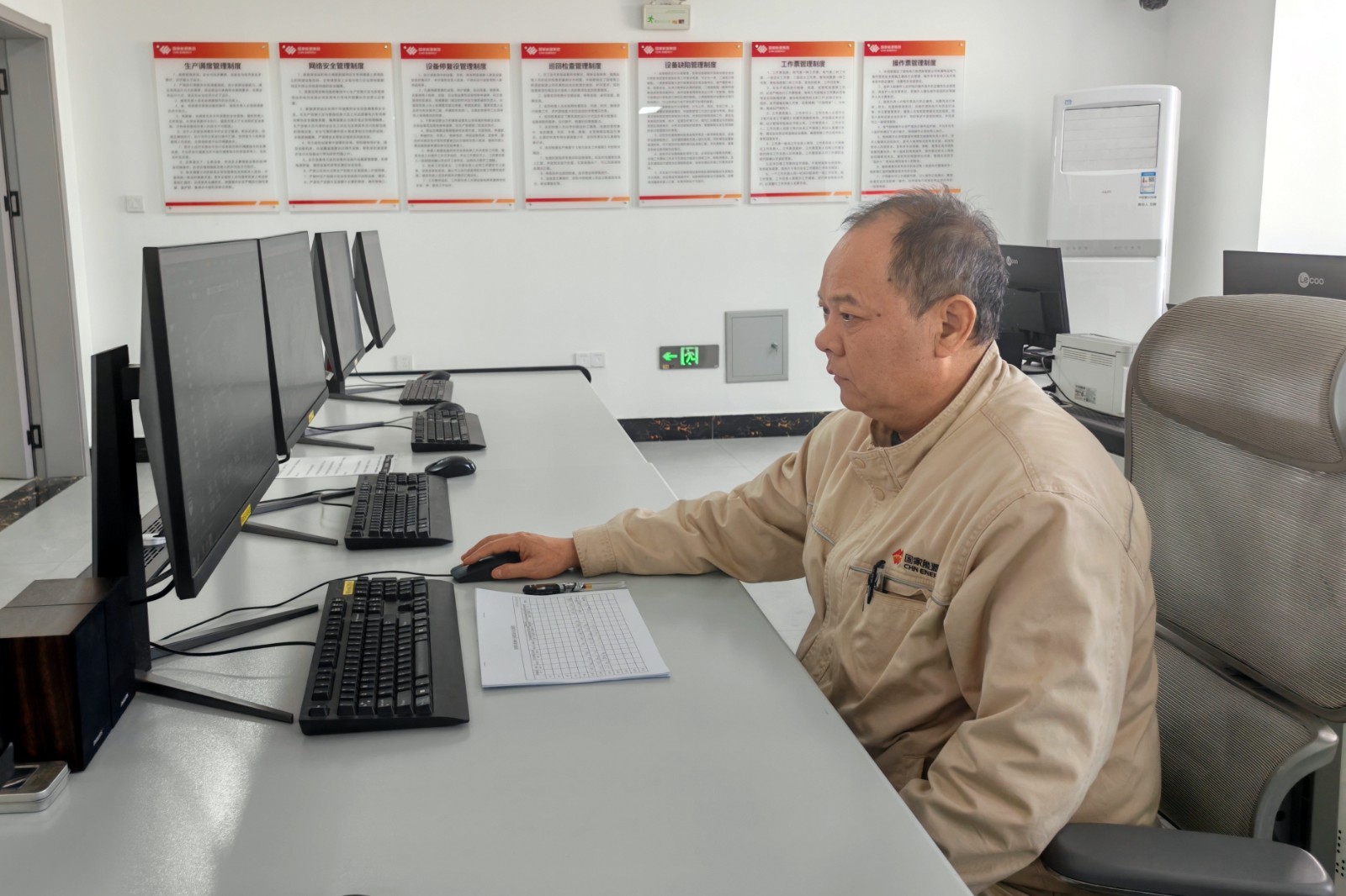 中國(guó)能源新聞網(wǎng)訊(楊伊龍 陳一鳴)初冬的戈壁灘上,一臺(tái)臺(tái)白色風(fēng)機(jī)巍然屹立,葉片在寒風(fēng)中緩緩轉(zhuǎn)動(dòng)。北風(fēng)如刀,深藍(lán)色天幕緩緩垂下,傍晚時(shí)分,國(guó)家能源集團(tuán)國(guó)電電力陜西新能源紅堿淖風(fēng)電場(chǎng)的中控室內(nèi)卻是另一番景象。值班員項(xiàng)亞軍緊盯屏幕,全場(chǎng)54臺(tái)風(fēng)機(jī)的運(yùn)行參數(shù)在不斷刷新,他的目光在功率曲線(xiàn)和設(shè)備狀態(tài)欄間快速切換,食指在鼠標(biāo)滾輪上輕輕滑動(dòng),屏幕上的曲線(xiàn)圖隨之延伸,天氣預(yù)報(bào)顯示晚上將迎來(lái)八級(jí)大風(fēng)。