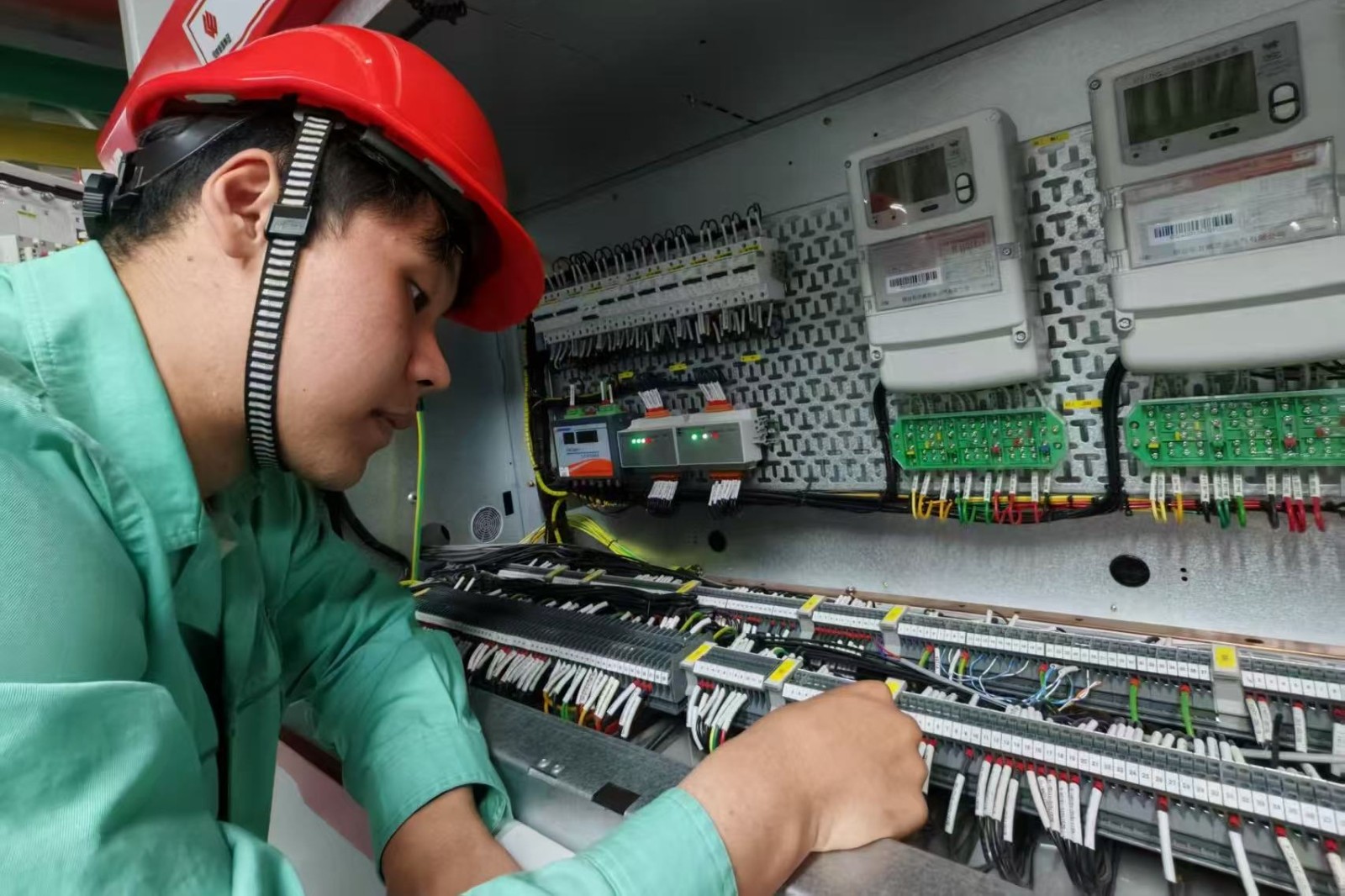 聲音來(lái)自電纜保護(hù)接地箱的方向,“是放電聲?!睆埡瓶隙ǖ卣f(shuō),他太熟悉這種聲音了。一旁的檢修人員迅速打開(kāi)箱體,果然發(fā)現(xiàn)了問(wèn)題:內(nèi)部因螺絲松動(dòng)導(dǎo)致保護(hù)箱未接地,在潮濕環(huán)境下產(chǎn)生了放電,如果放任不管,便可能引發(fā)設(shè)備燒損。