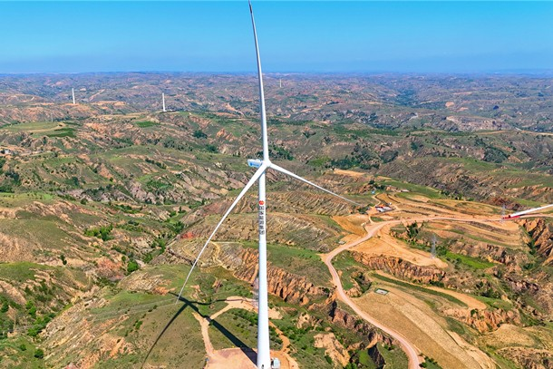 該項目總裝機容量20萬千瓦,共安裝32臺單機容量6.25兆瓦的風力發(fā)電機組。項目位于黃土高原溝壑區(qū),道路狹窄、坡度大、彎道急,超長葉片與大型風機的運輸成為項目推進的主要挑戰(zhàn)。為確保設備順利進場,項目團隊提前部署,累計完成98處道路改造和5座橋梁加固,有效打通設備運輸“生命線”。項目建設期間,面對降雨、大風等不利天氣影響,項目團隊建立動態(tài)響應機制,加強調度管理,優(yōu)化施工流程,充分利用風速適宜、雨勢間歇的窗口期組織施工,全力推進安裝進度,最大限度降低天氣對工期的影響。