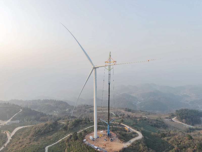 貴州金元首個(gè)分散式風(fēng)電項(xiàng)目全部風(fēng)機(jī)順利吊裝