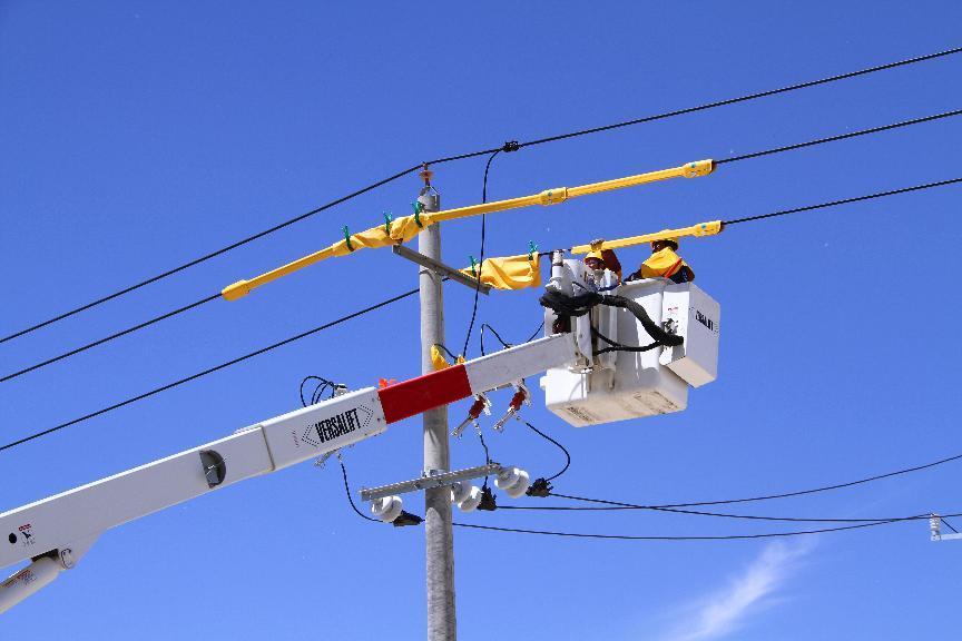 國(guó)網(wǎng)嘉峪關(guān)供電公司員工在嘉峪關(guān)新城鎮(zhèn)采用不停電作業(yè)方式搭接10千伏引流線