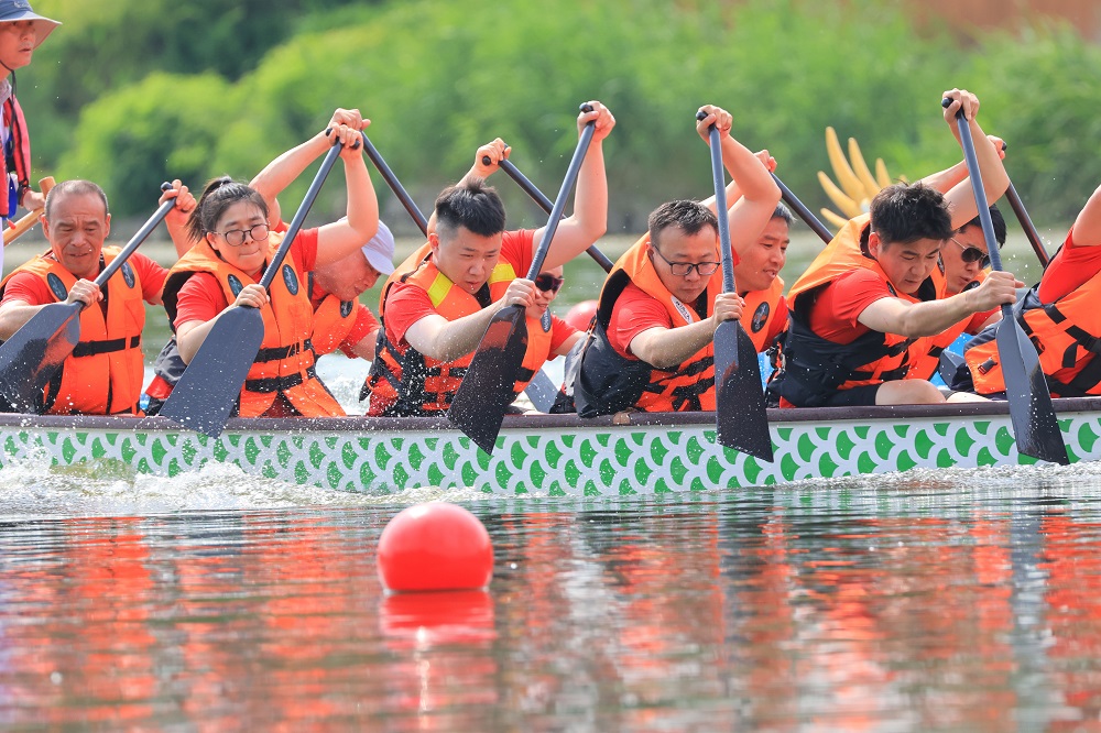 龍舟大賽是一場意志力、毅力與團隊協(xié)作力的綜合比拼,詮釋了敢為人先、挑戰(zhàn)自我、奮勇向前的拼搏精神。比賽中,面對強手如林的各參賽隊,來自大唐環(huán)境公司一線職工組成的龍舟隊員不畏艱難,齊心協(xié)力。鼓手扮演著領(lǐng)航者的角色,根據(jù)龍舟和對手的速度調(diào)整鼓聲的頻率和吹哨子的節(jié)奏,提醒隊友開足馬力,進而掌控龍舟的行進節(jié)奏;隊員之間配合默契,劃槳有力,龍舟在湖面上飛馳而過,激起層層浪花。數(shù)萬觀眾岸畔吶喊,共享傳統(tǒng)文化盛事。大唐環(huán)境公司龍舟隊此次參賽,在弘揚傳統(tǒng)文化的同時,也展示了追求卓越、超越自我大唐員工的青春風采。