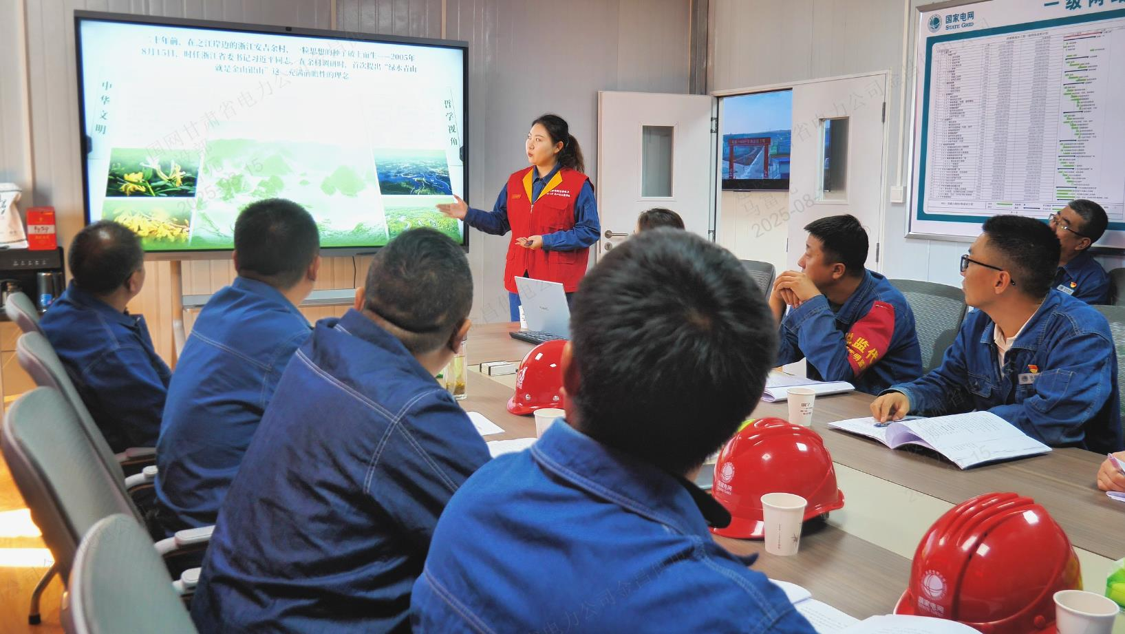 正值全國生態(tài)日暨“兩山”理論提出20周年之際,活動深入宣傳了“兩山”理論的科學(xué)內(nèi)涵和時代價值。特邀省電力黨校專家講授《隴原答卷二十載青山作筆繪新卷》專題黨課,授課老師講道:“80年前的今天,日本無條件投降,站在新的歷史起點上,我們要傳承好紅色基因,不僅要把對歷史的敬畏作為我們前進的動力,還要把對自然的尊重展現(xiàn)為我們實踐的擔當,在新的征程上書寫我們共產(chǎn)黨人的忠誠答卷?!迸c會人員深受教育,一致表示將在后續(xù)電網(wǎng)規(guī)劃、設(shè)計、建設(shè)和運維全過程中,自覺踐行“兩山”理念,堅定不移走生態(tài)優(yōu)先、綠色發(fā)展之路,積極落實綠色建造要求,為建設(shè)美麗中國貢獻電網(wǎng)力量。
