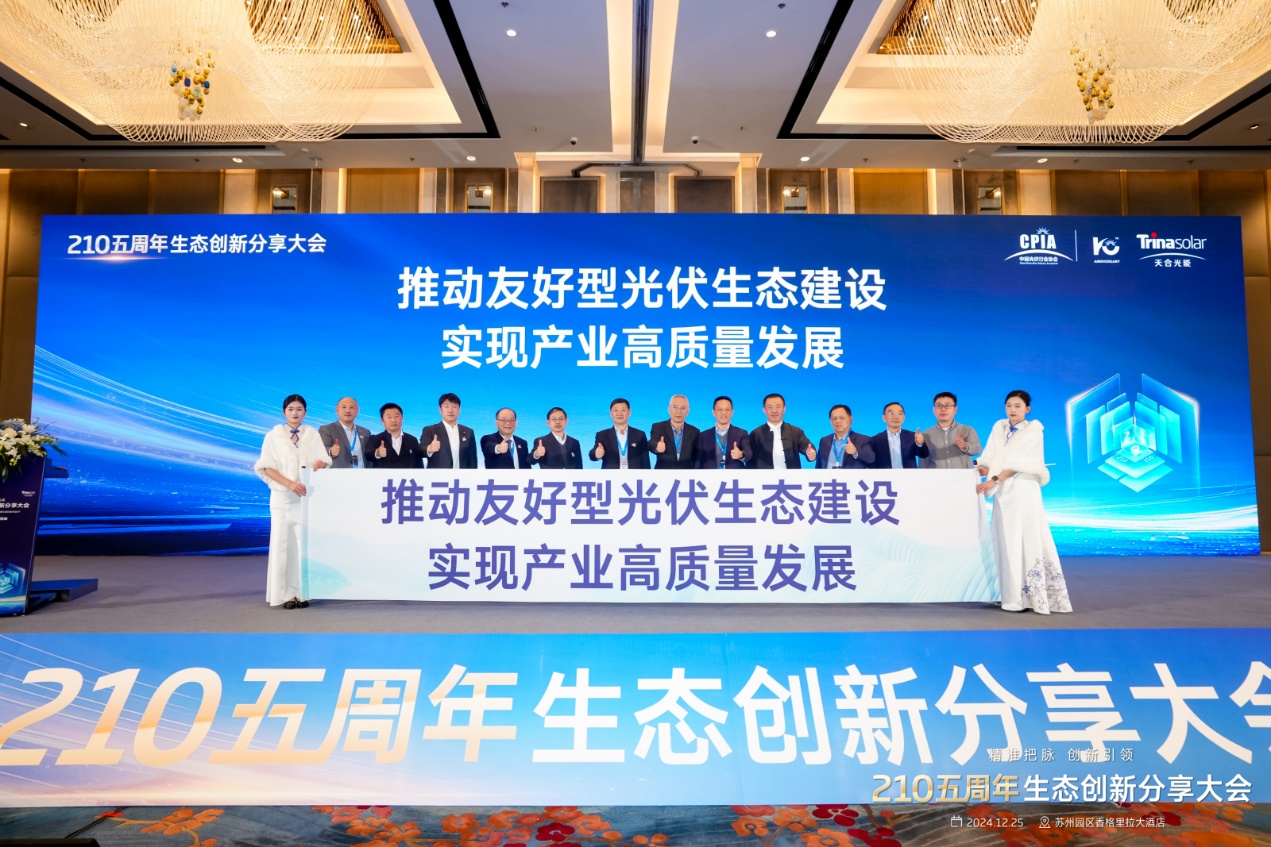 12月25日,由國光伏行業(yè)協會指導,天合光能主辦的“精準把脈,創(chuàng)新引領,210五周年生態(tài)創(chuàng)新分享大會”圓滿舉辦。國光伏行業(yè)協會名譽理事長王勃華、長三角太陽能光伏技術創(chuàng)新中心主任沈輝教授、天合光能副董事長、聯席總裁高紀慶發(fā)表致辭。210產業(yè)生態(tài)企業(yè)及機構代表齊聚蘇州,共同回顧行業(yè)為210產業(yè)生態(tài)的奮斗過程,探討光伏行業(yè)協同創(chuàng)新模式。與會企業(yè)還發(fā)出產業(yè)高質量發(fā)展倡議,推動友好型光伏生態(tài),實現產業(yè)高質量發(fā)展。