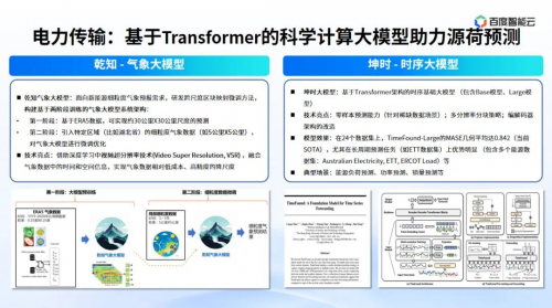 基于Transformer的科學(xué)計(jì)算大模型助力源荷預(yù)測(cè)方面,百度智能云構(gòu)建了兩個(gè)科學(xué)計(jì)算大模型,一個(gè)是乾知、一個(gè)是坤時(shí)。通過(guò)超分辨率技術(shù)與零樣本預(yù)測(cè)能力等技術(shù),可以助力調(diào)度工作,提升在氣象、新能源、負(fù)荷側(cè)的預(yù)測(cè)效果。