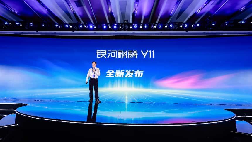中國電子、麒麟軟件首席科學(xué)家韓乃平發(fā)布銀河麒麟操作系統(tǒng)V11。
