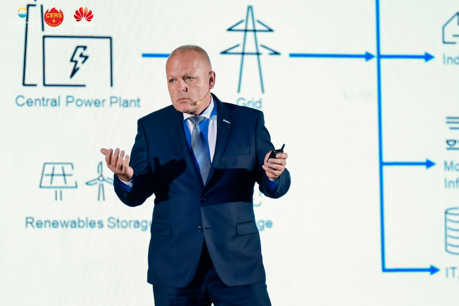 華為董事、華為數(shù)字能源總裁侯金龍發(fā)表致辭。