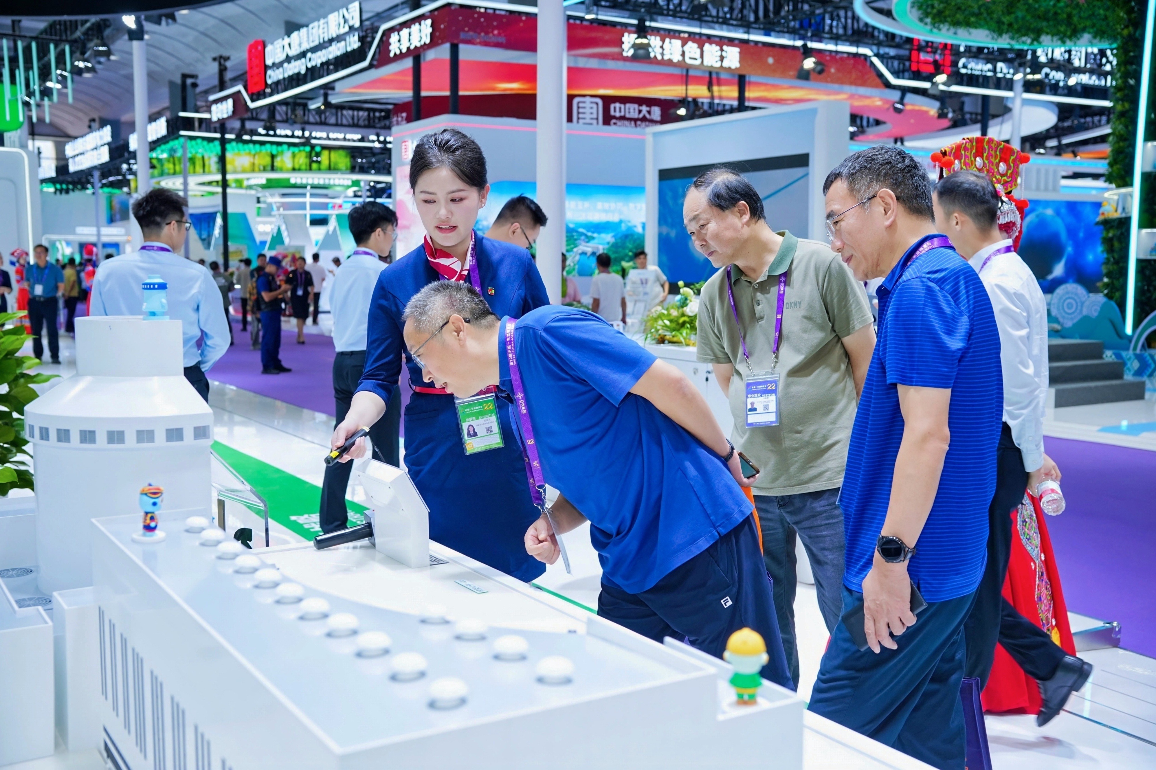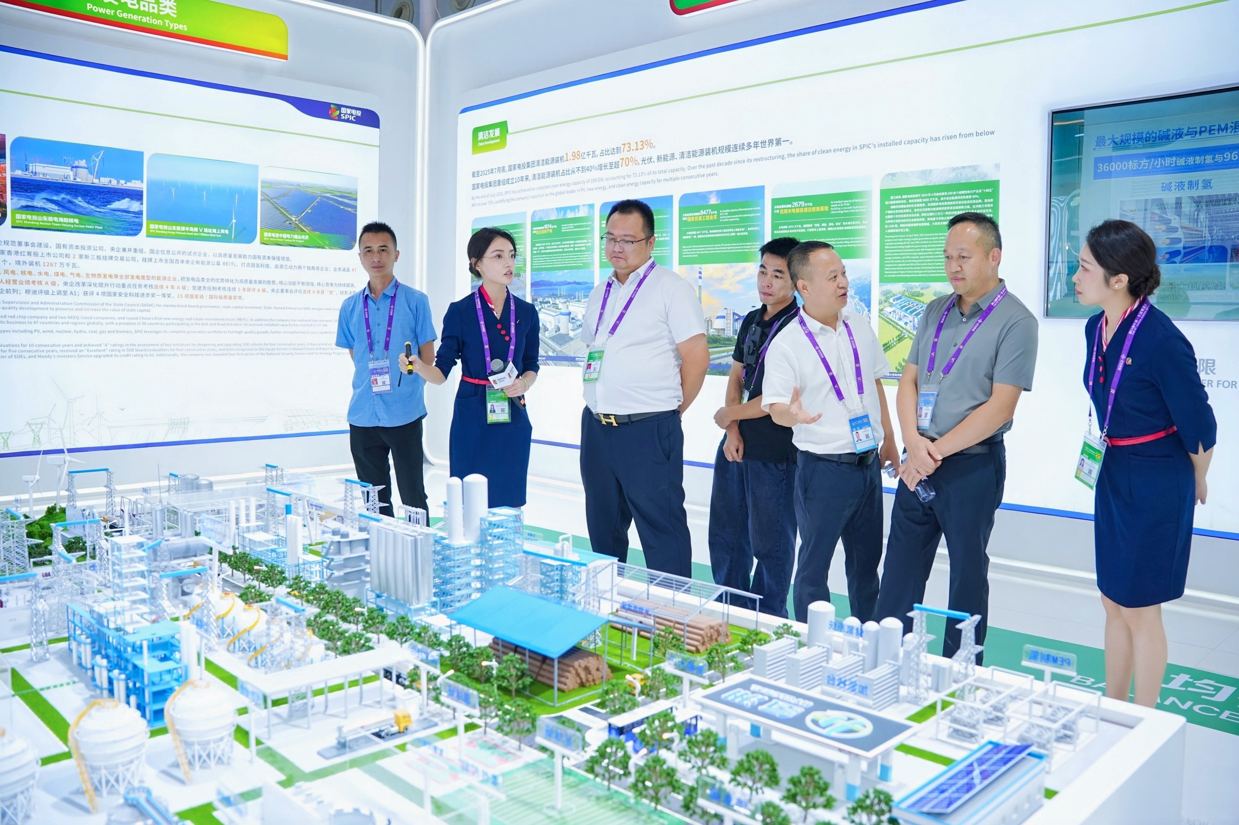 國家電投集團(tuán)展臺以“中國紅”和“夢想綠”的企業(yè)品牌色彩為主調(diào),聚焦“創(chuàng)造綠色價(jià)值,擁抱美好未來”主題,亮相電力單元展位,利用立體形象的多功能模型,展出國家科技重大專項(xiàng)“國和一號”,以及大安綠色氫基能源、“氫騰”燃料電池、“氫涌”PEM電解槽等重大創(chuàng)新技術(shù),突出展示了國家電投集團(tuán)“清潔發(fā)展快、產(chǎn)業(yè)結(jié)構(gòu)好、創(chuàng)新責(zé)任重”的優(yōu)勢特點(diǎn)。結(jié)合本次東博會主題,同步展現(xiàn)了國家電投集團(tuán)在桂清潔能源發(fā)展所取得的成效,以及面向緬甸、越南、馬來西亞、菲律賓等東盟國家的業(yè)務(wù)發(fā)展概況,以圖文、模型、視頻及講解多元視角,全面呈現(xiàn)出央企責(zé)任擔(dān)當(dāng)。