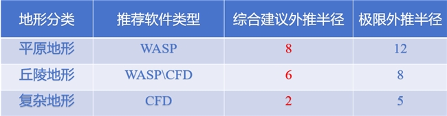 基于詳實(shí)的數(shù)據(jù)分析,該研究首次為行業(yè)提供了量化的外推半徑建議:平原地形建議使用傳統(tǒng)線性模型,外推半徑8千米;丘陵地形需謹(jǐn)慎選擇模型,外推半徑6千米;復(fù)雜地形推薦使用CFD模型,外推半徑應(yīng)控制在2千米以內(nèi)。