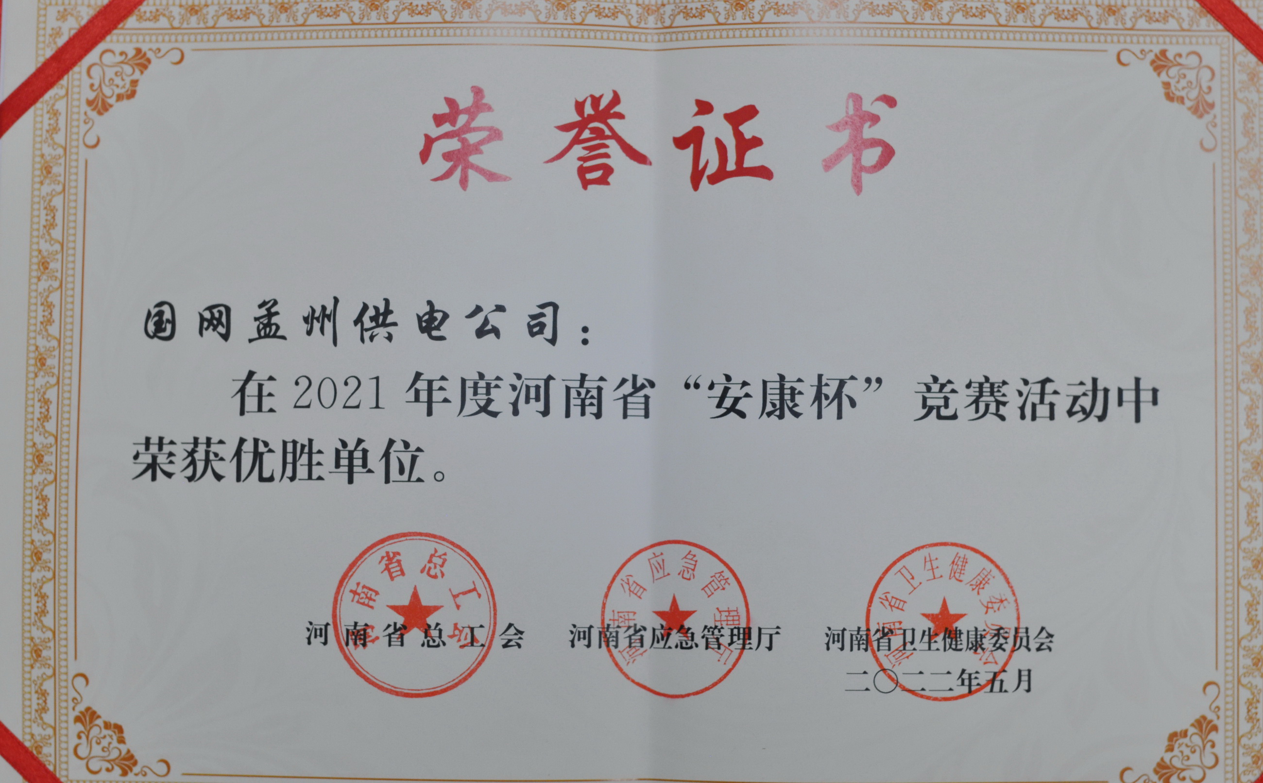 中國電力新聞網(wǎng)訊 通訊員 席松奇 報道 6月20日獲悉,國網(wǎng)孟州市供電公司被河南省總工會、河南省應急管理廳、河南省衛(wèi)生健康委員會授予2021年度河南省“安康杯”競賽優(yōu)勝單位榮譽稱號。