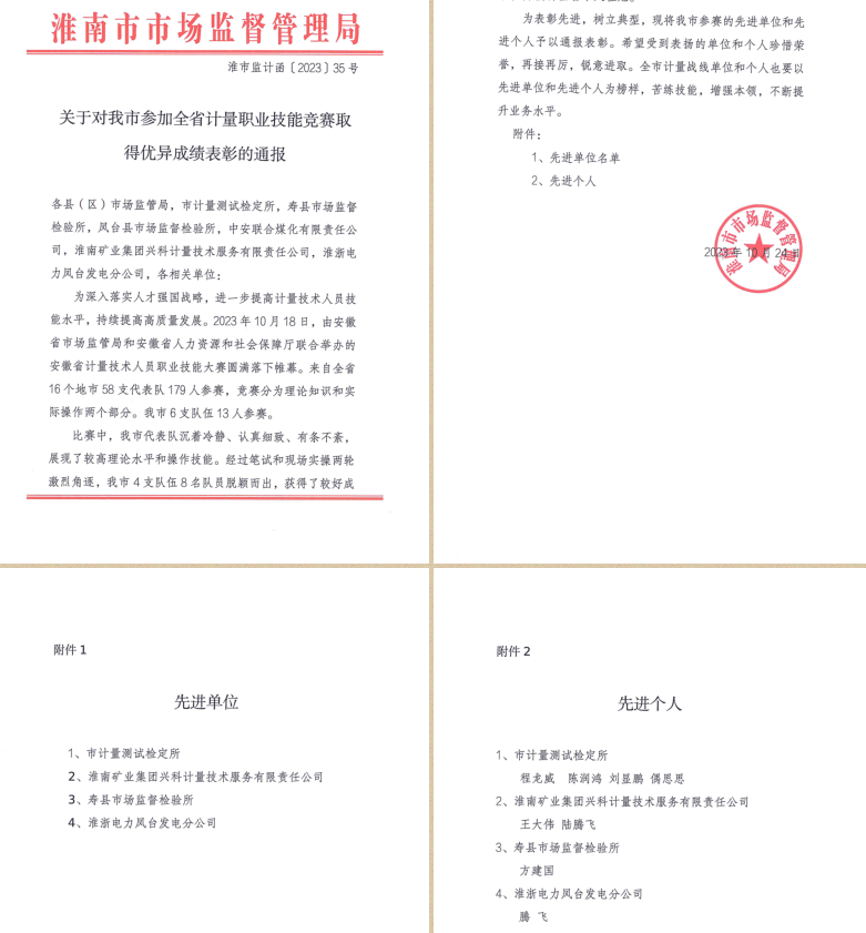鳳電榮獲安徽省計(jì)量技術(shù)人員職業(yè)技能大賽參賽先進(jìn)單位,鳳電選手獲參賽先進(jìn)個(gè)人通報(bào)表彰。桂華攝